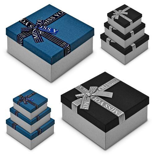 Подарункова коробка 28,2×20,2×9,2 см зі стрічкою та принтом BLUE HL-215