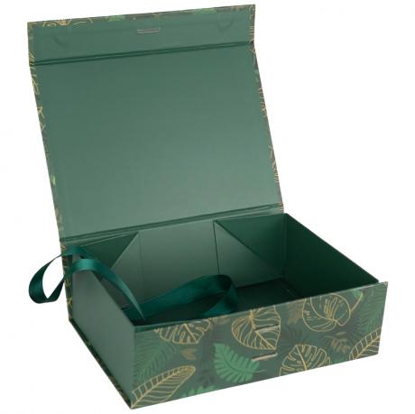 Подарункова коробка 28,2×20,2×9,2 см зі стрічкою та принтом DARK GREEN HL-214