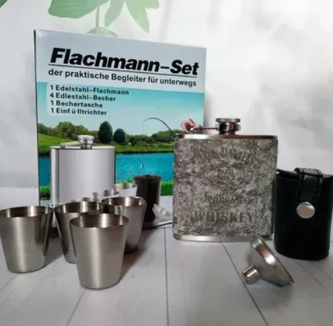 Стильный и практичный набор для настоящих ценителей отдыха на природе. В комплект входит металлическая фляга объёмом 210 мл с обложкой из эко-кожи с легендарным тиснением Jack Daniel’s Tennessee Whiskey, а также 4 стопки, лейка для удобного наполнения и компактный футляр для хранения рюмок. Упаковано в красочную подарочную упаковку.