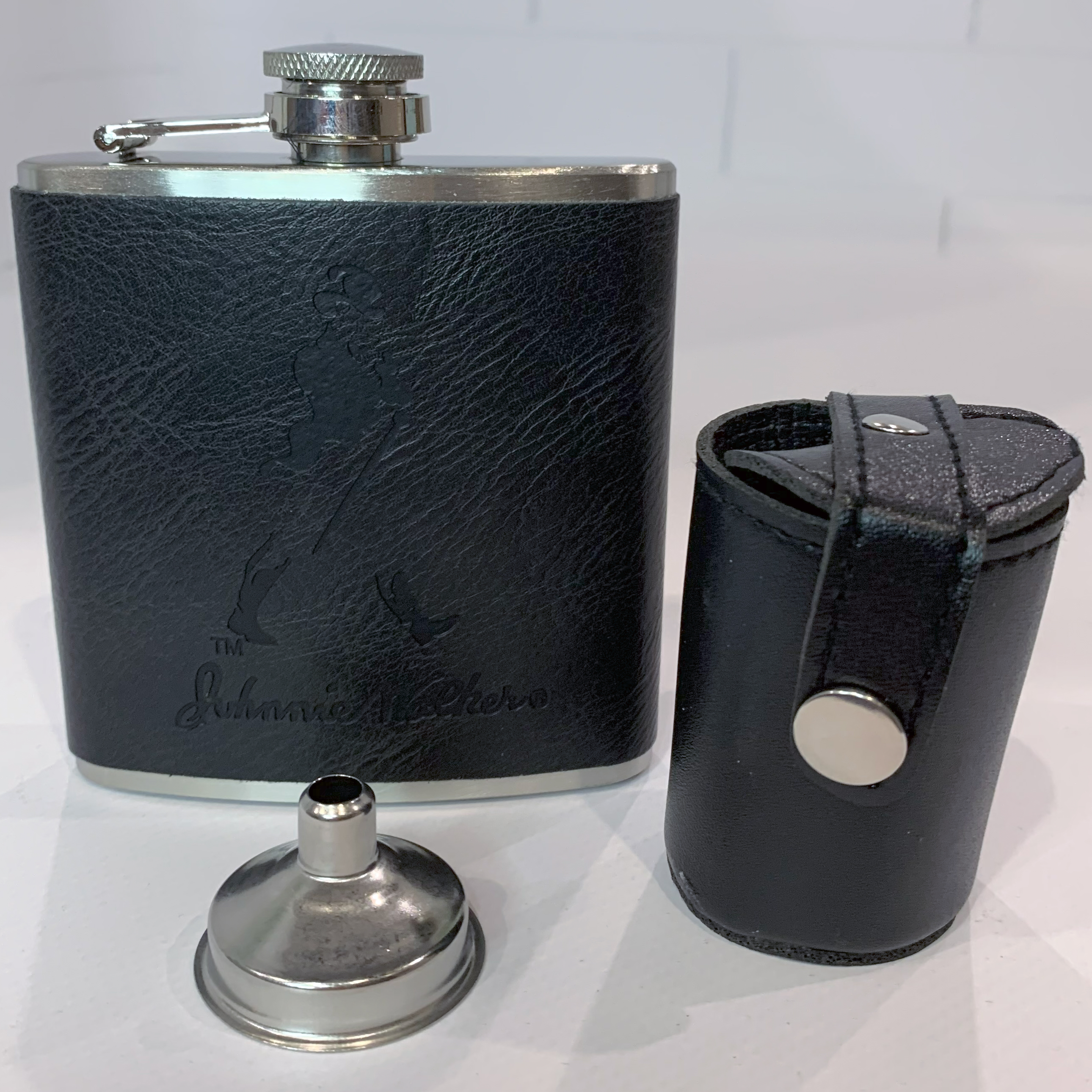 Элегантный набор для настоящих ценителей отдыха и стиля. Фляжка оформлена в кожаной обложке с узнаваемым силуэтом Johnnie Walker — символа классики и мужского характера.