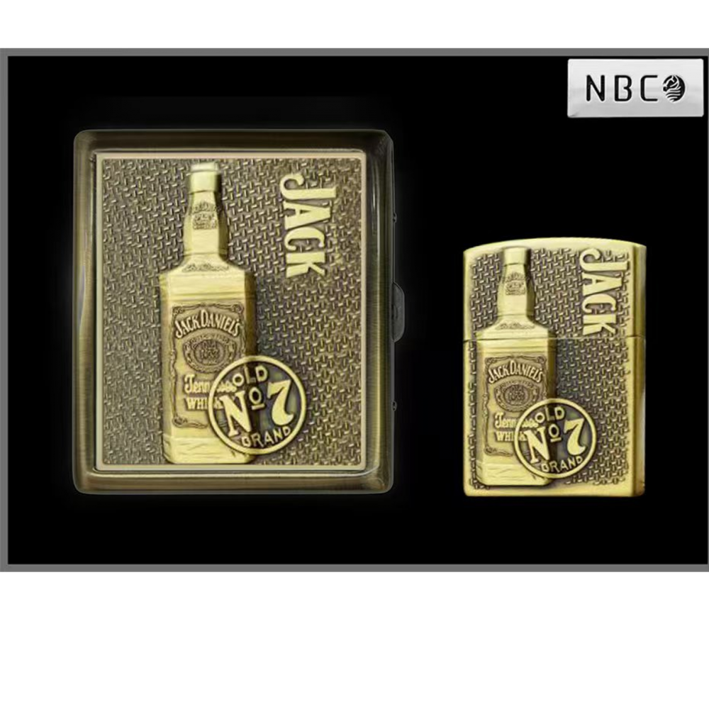 Оригинальный подарочный набор, состоящий из металлической газовой зажигалки и портсигара, выполненных в едином дизайнерском стиле. На обеих поверхностях рельефно изображена бутылка Jack Daniel’s Old No. 7 — знаменитого американского виски.