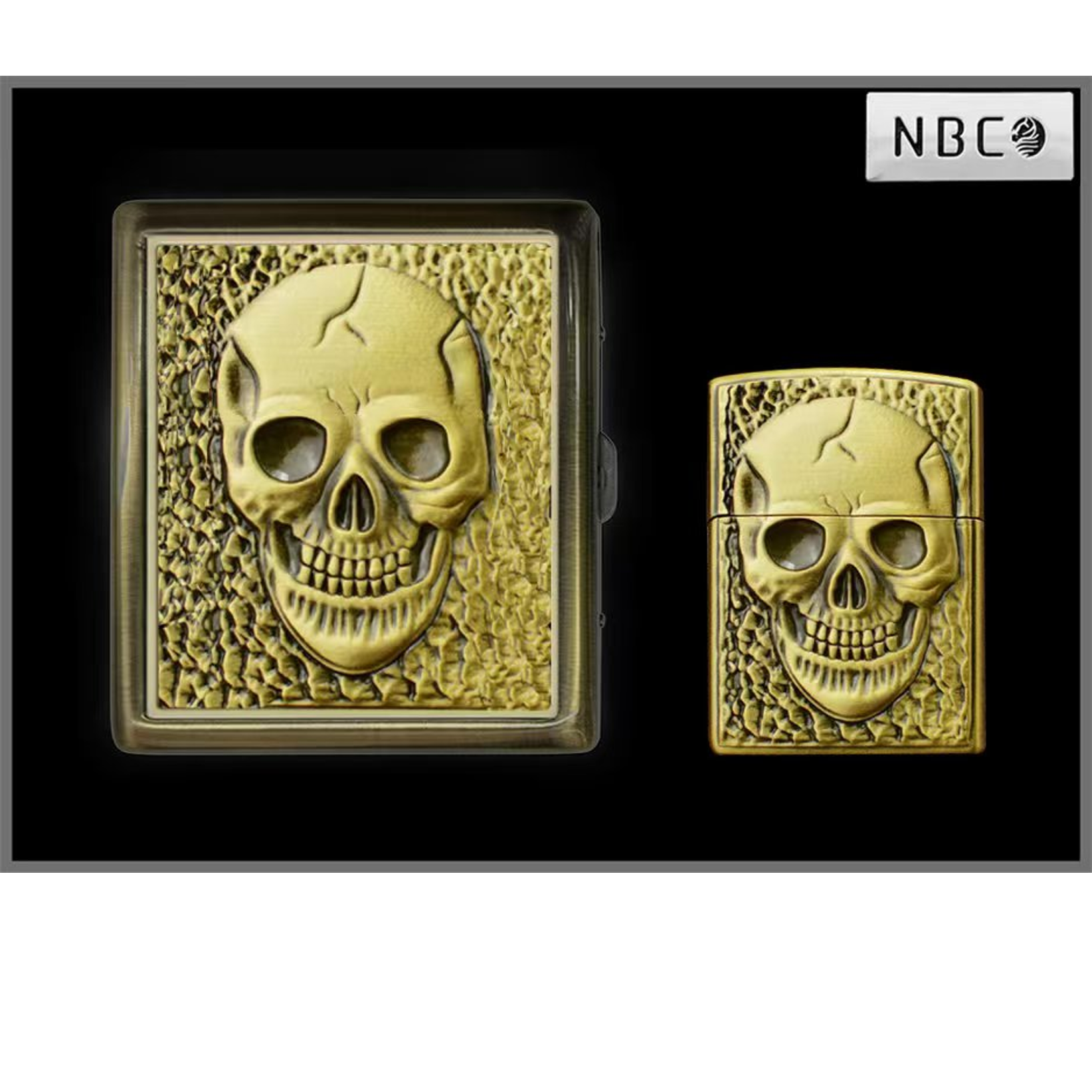 Оригинальный и дерзкий подарочный набор, состоящий из газовой зажигалки и портсигара, выполненных в едином стиле. Центральный элемент дизайна — объёмный рельеф черепа на текстурированном фоне, символизирующий брутальность, силу и бесстрашие.