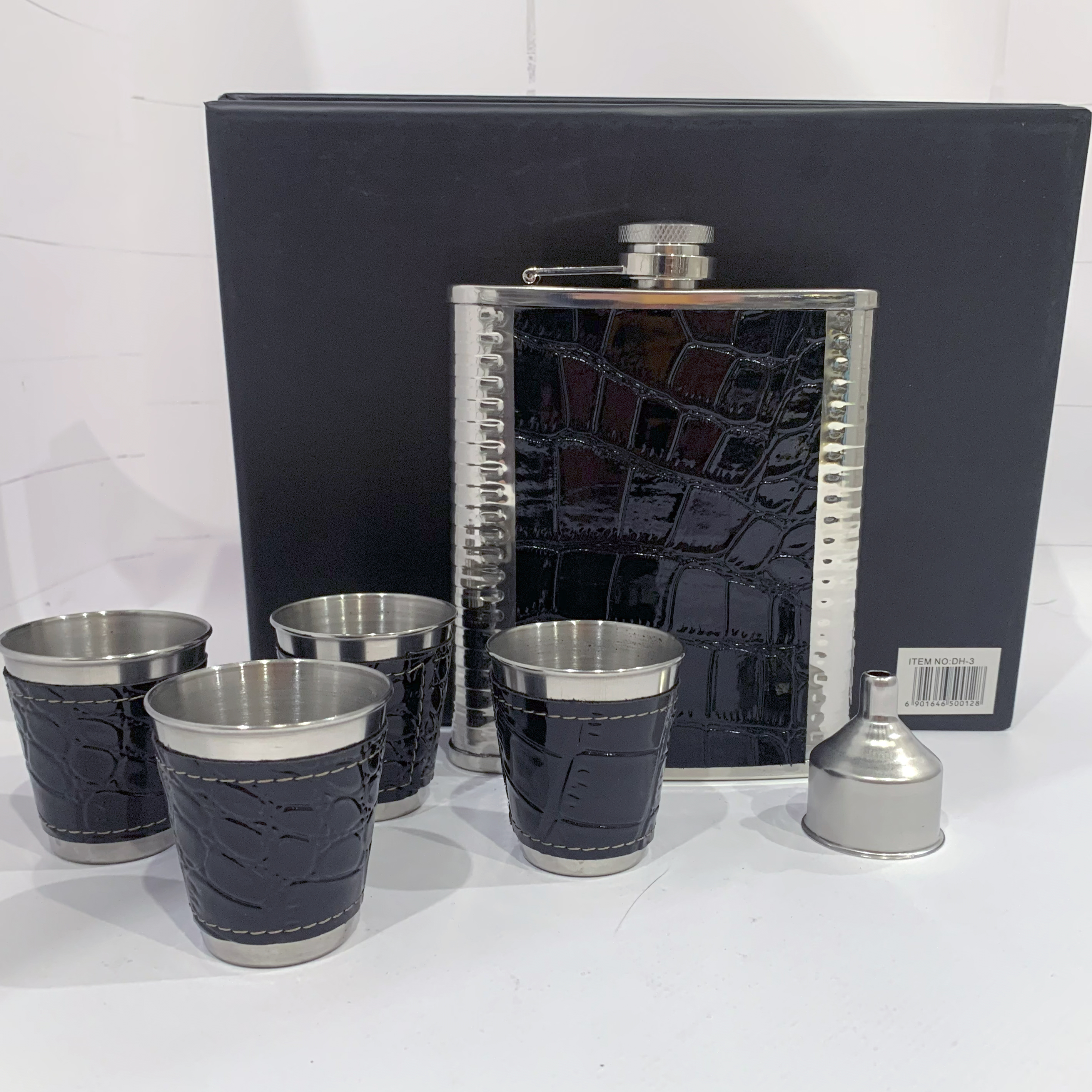 Подарочный набор: Фляга 9oz с рюмками в кожаном стиле (6 предметов) TZ-48