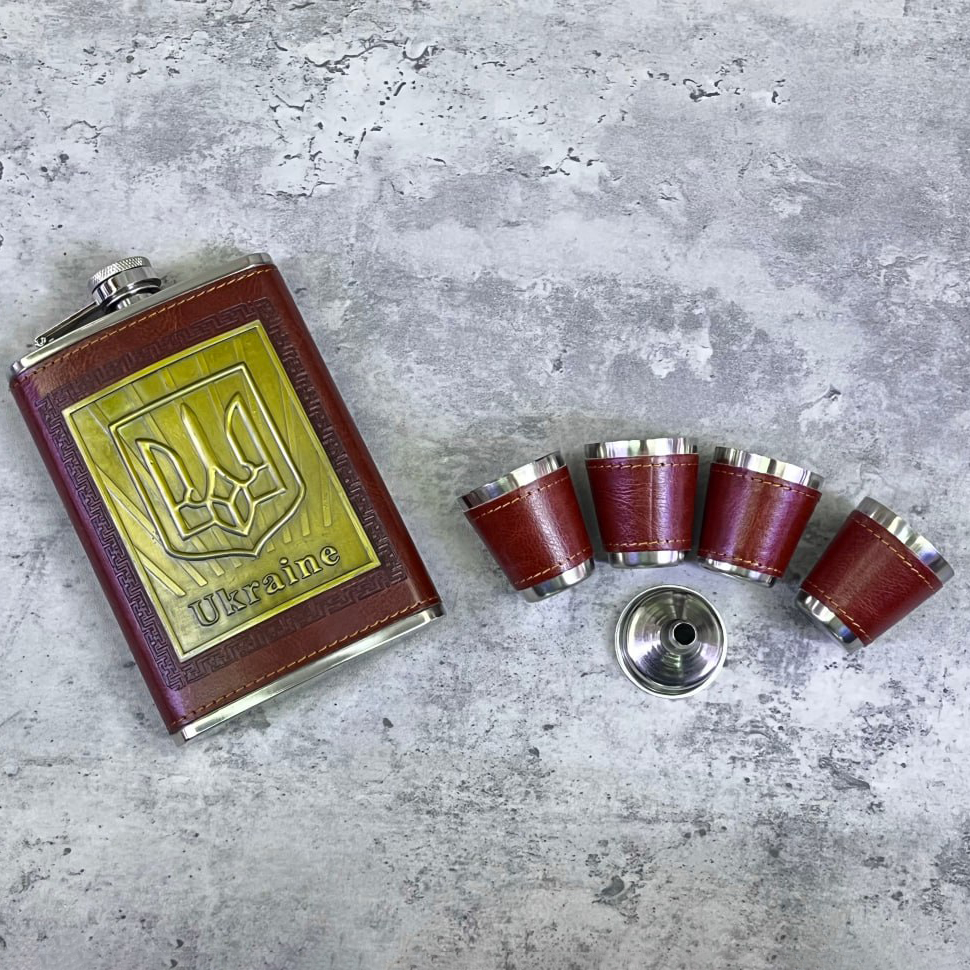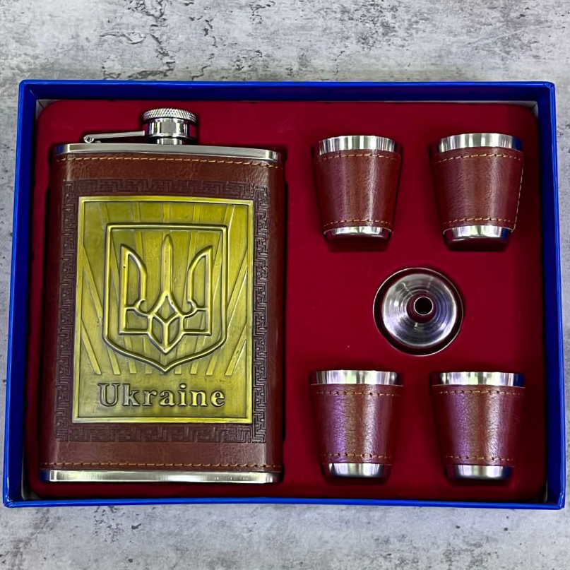 Подарочный набор Ukraine фляга / лейка / 4 рюмки (Кожа) TZ-12A коричневый