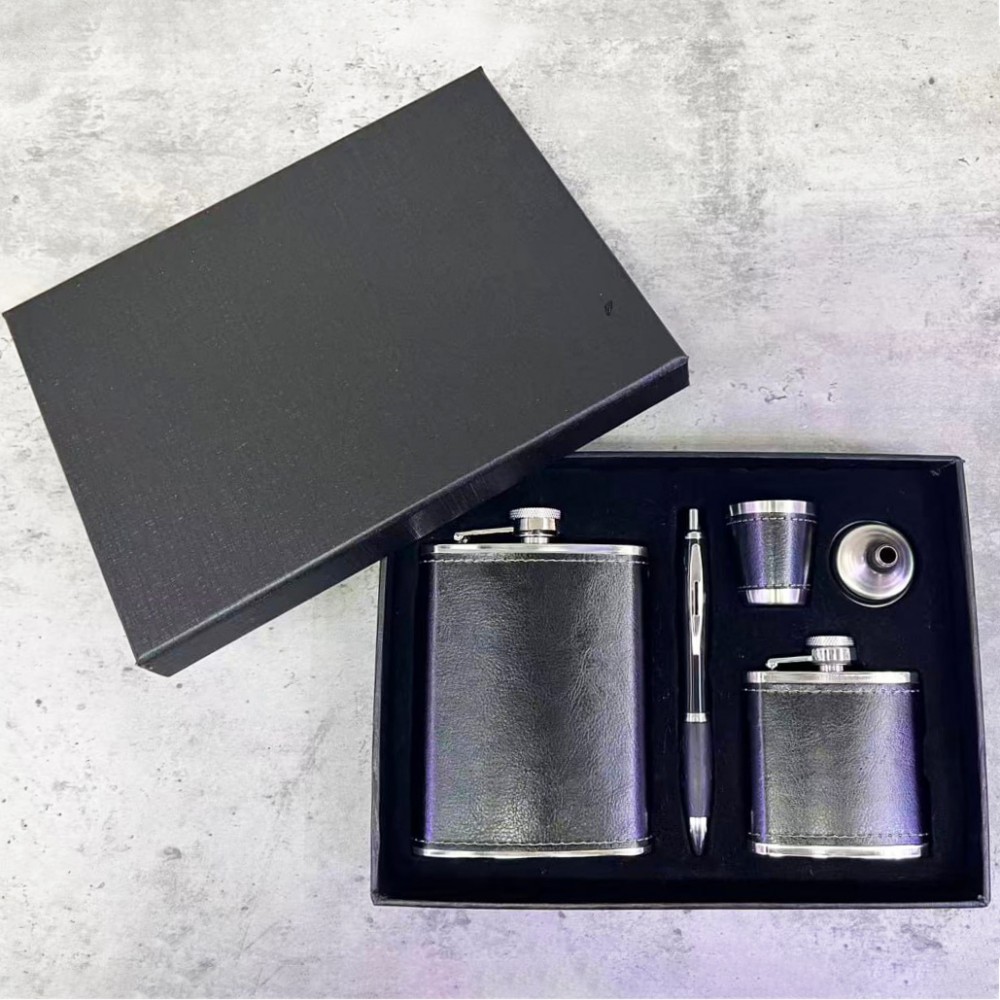 Стильный и практичный подарочный набор для мужчин, который идеально подойдёт для праздников, корпоративных подарков и оптовых продаж. Комплект выполнен в строгом чёрном дизайне из эко-кожи и аккуратной декоративной строчкой.
