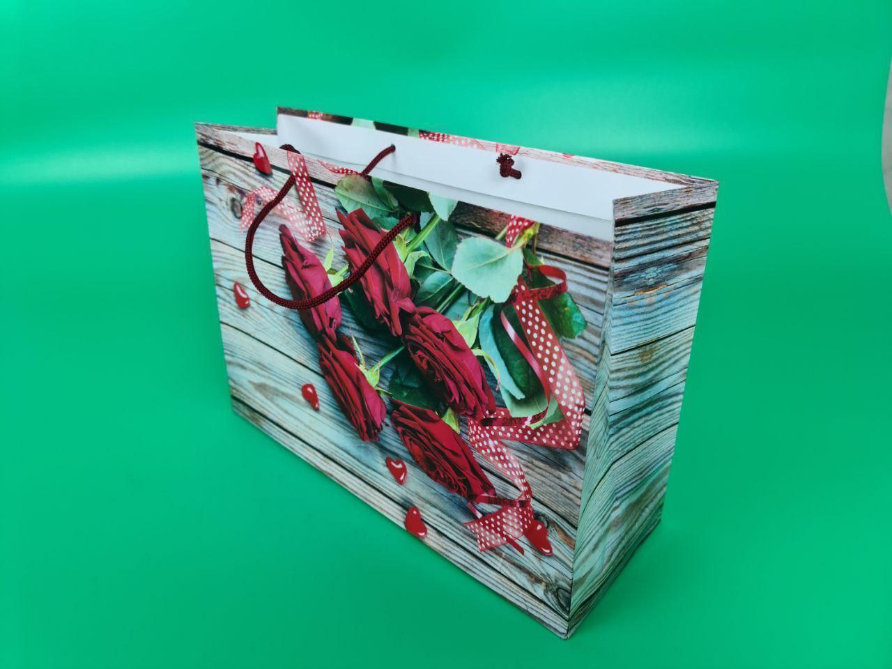 Бумажный подарочный пакет большой горизонтальный. Размер: 36*22*10см. Мелованная бумага с глянцевой ламинацией. Цена указана за упаковку - 12шт одного вида.