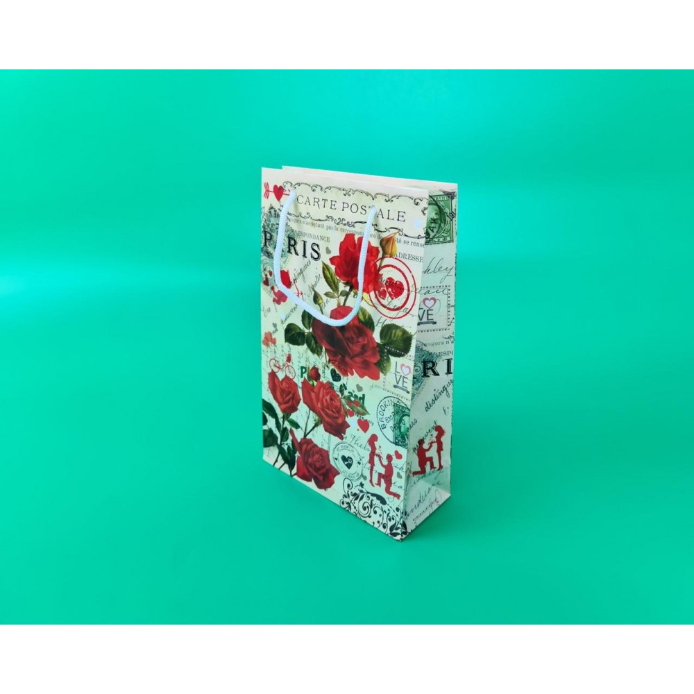 Бумажный подарочный пакет средний. Размер: 17*26*8см. Мелованная бумага с глянцевой ламинацией. Цена указана за упаковку - 12шт одного вида.