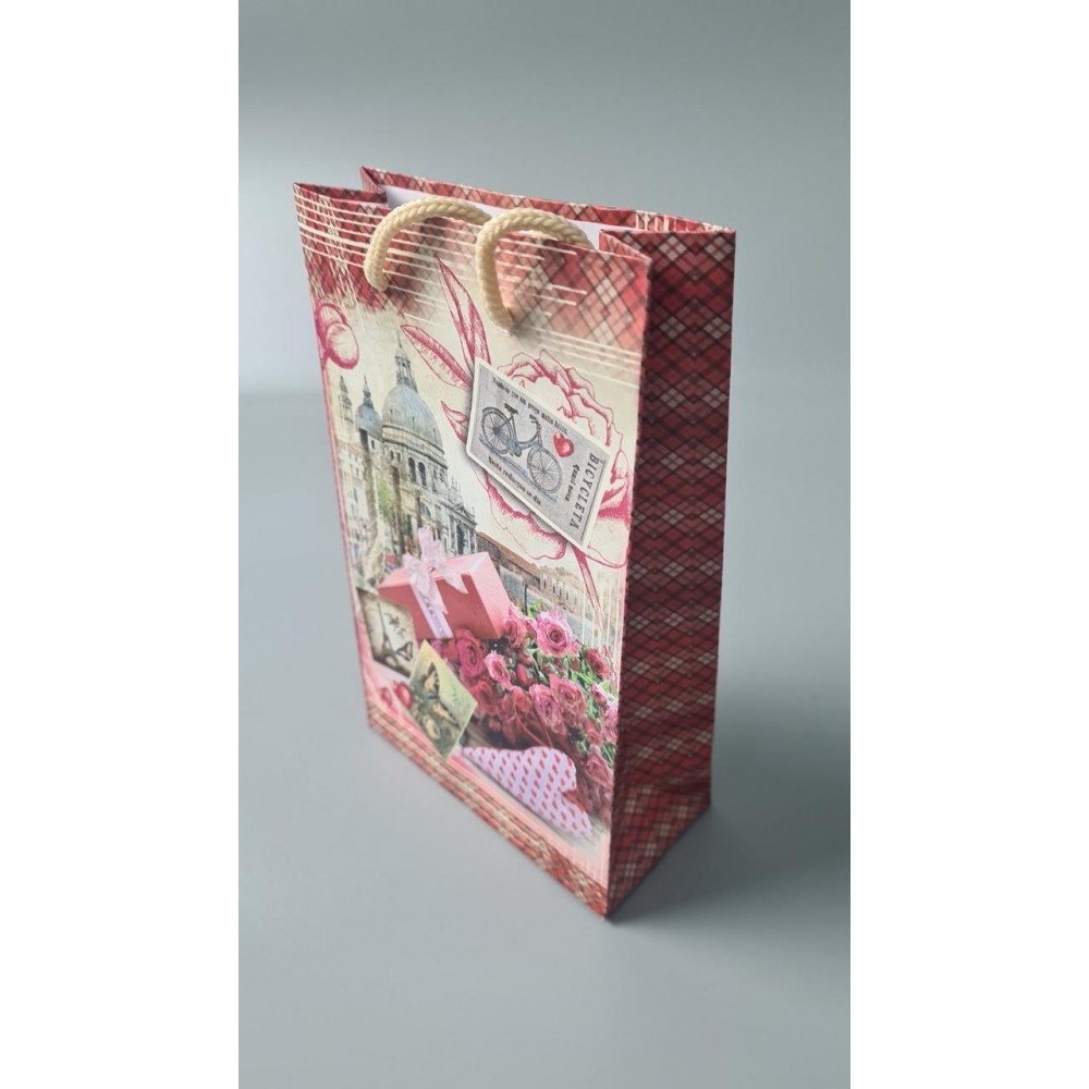Бумажный подарочный пакет. Размер: 11*18*5см. Мелованная бумага с глянцевой ламинацией. Цена указана за упаковку - 12шт одного вида.