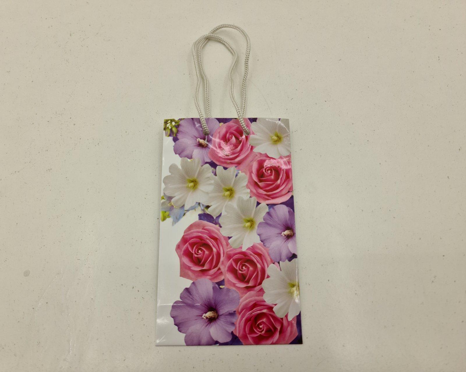 Бумажный подарочный пакет. Размер: 11*18*5см. Мелованная бумага с глянцевой ламинацией. Цена указана за упаковку - 12шт одного вида.