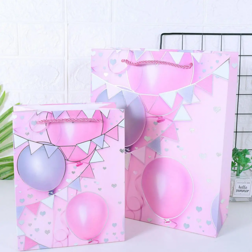 Пакет для подарка большой вертикальный "Шарики и гирлянды на розовом" 26х32 см