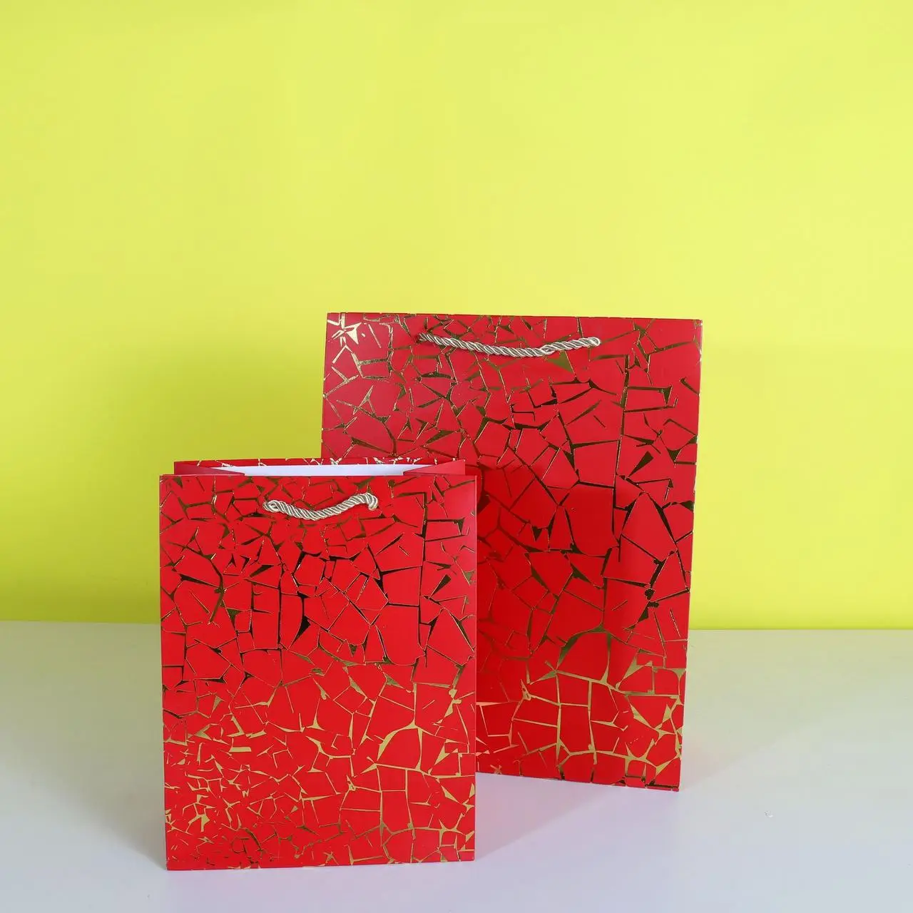 Пакет для подарка большой вертикальный "Золотая мозаика на красном" 26х32 см