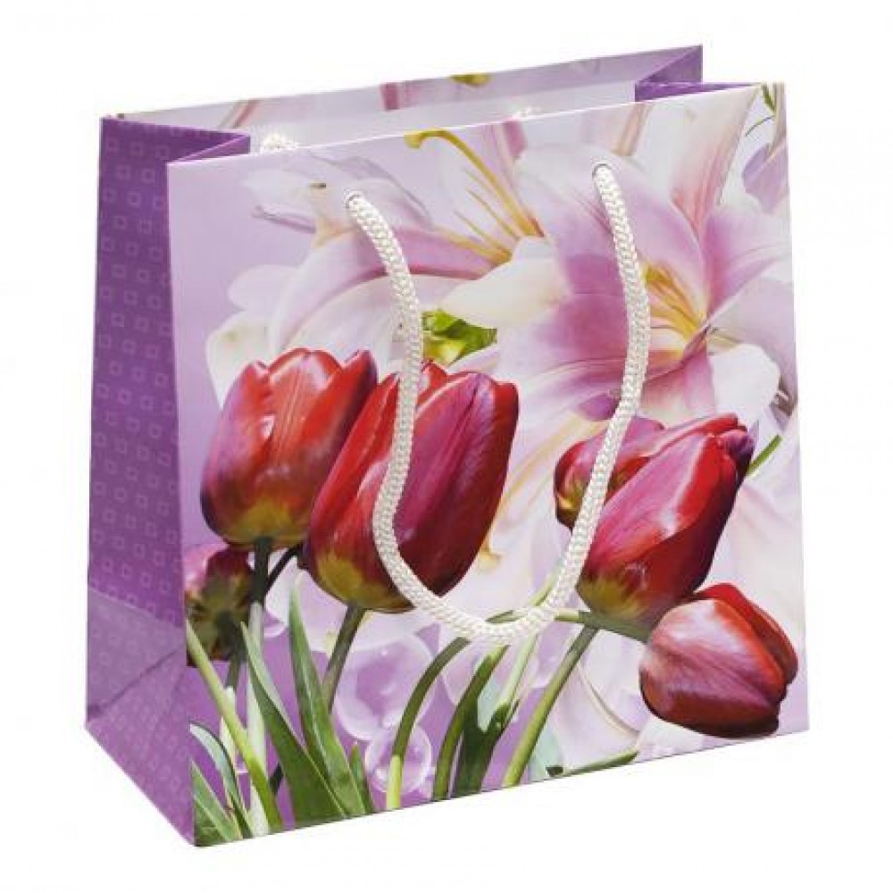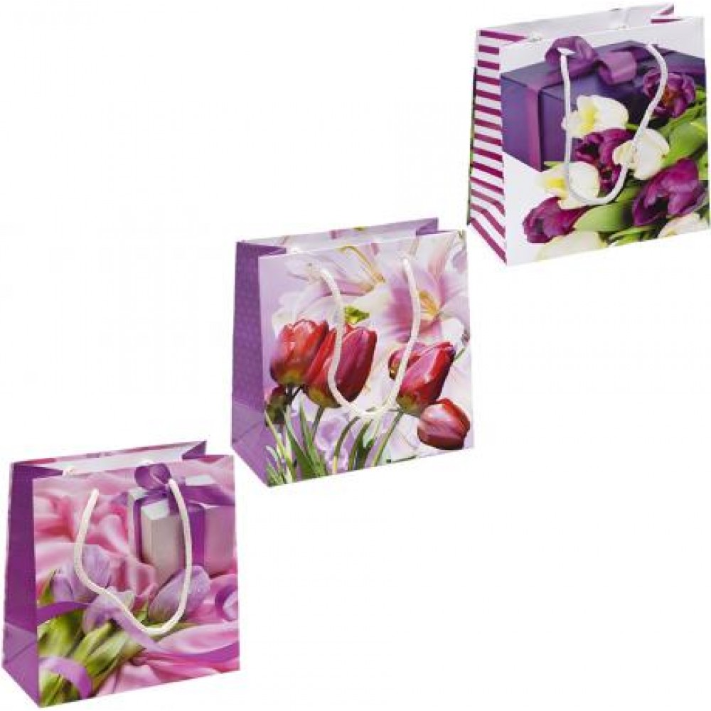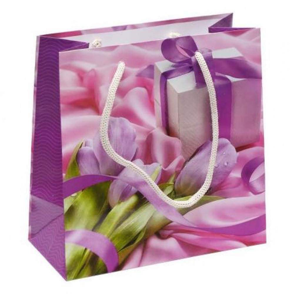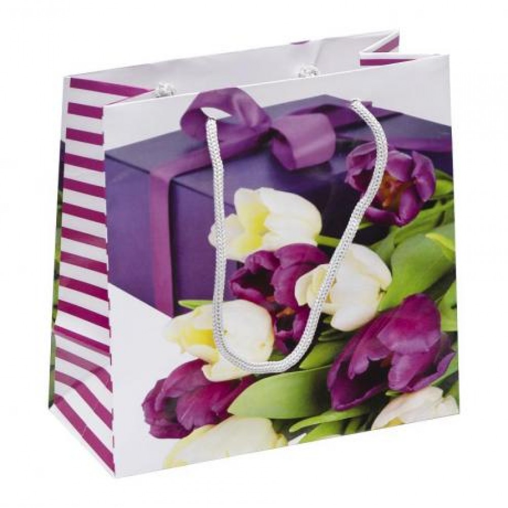 Пакет подарунковий кольоровий з глянцевою поверхнею. Має ручки-шнурки. Розмір 16х16х7 см. У наборі 12 штук. Кольори представлені в асортименті.