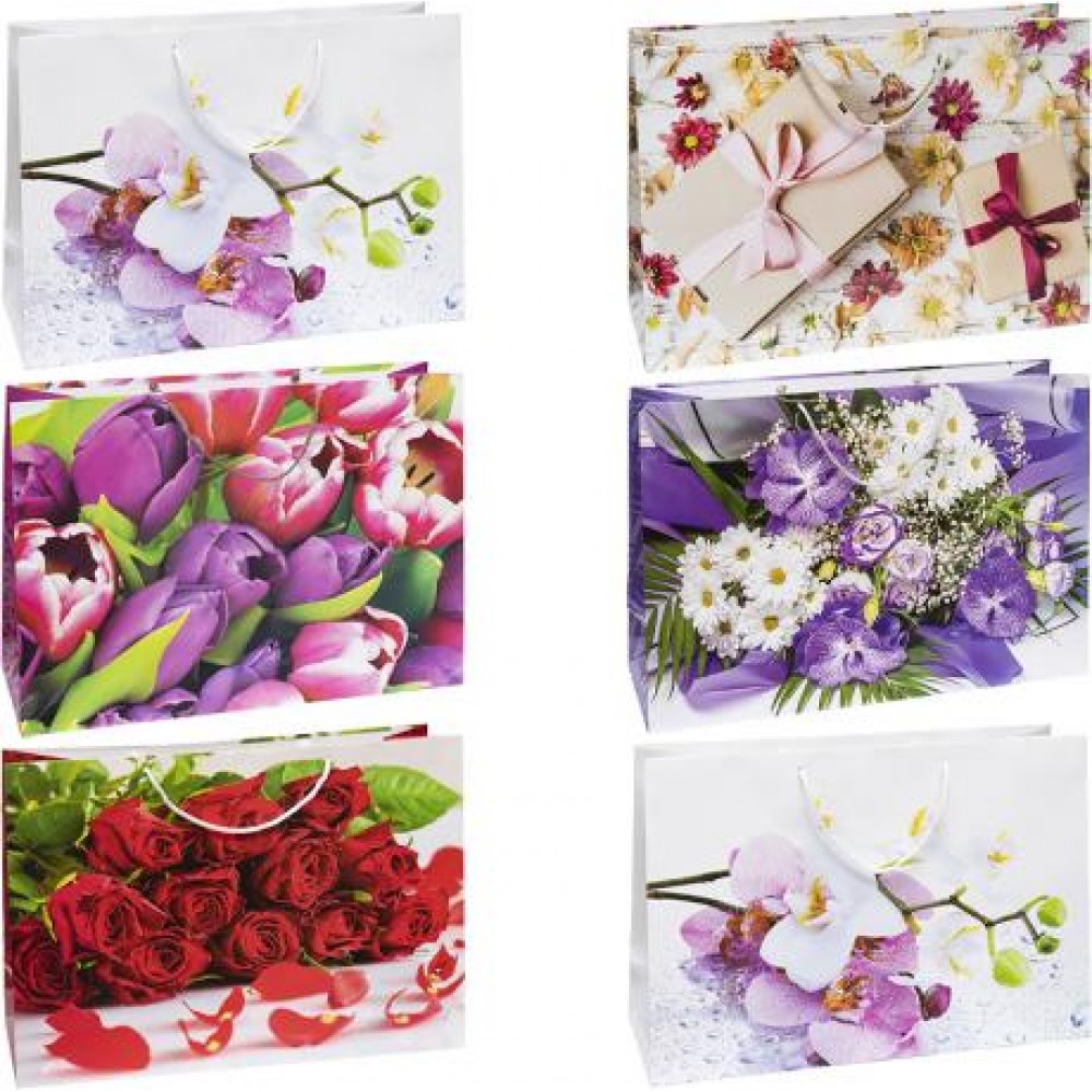 Пакет кольоровий гігант розміром 33х46х15 см. Має ручки-шнурки. У наборі 12 штук.
