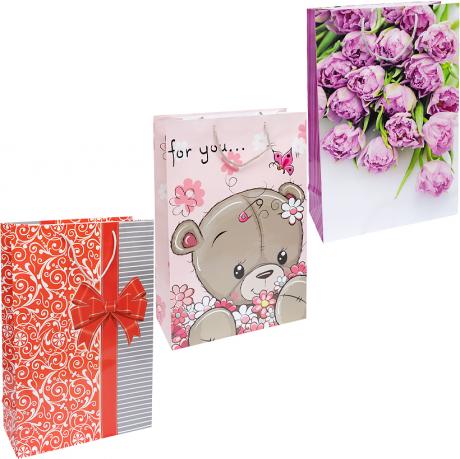 Пакет кольоровий гігант вертикальний розміром 45х30х12 см. Має ручки-шнурки. У комплекті 12 штук.