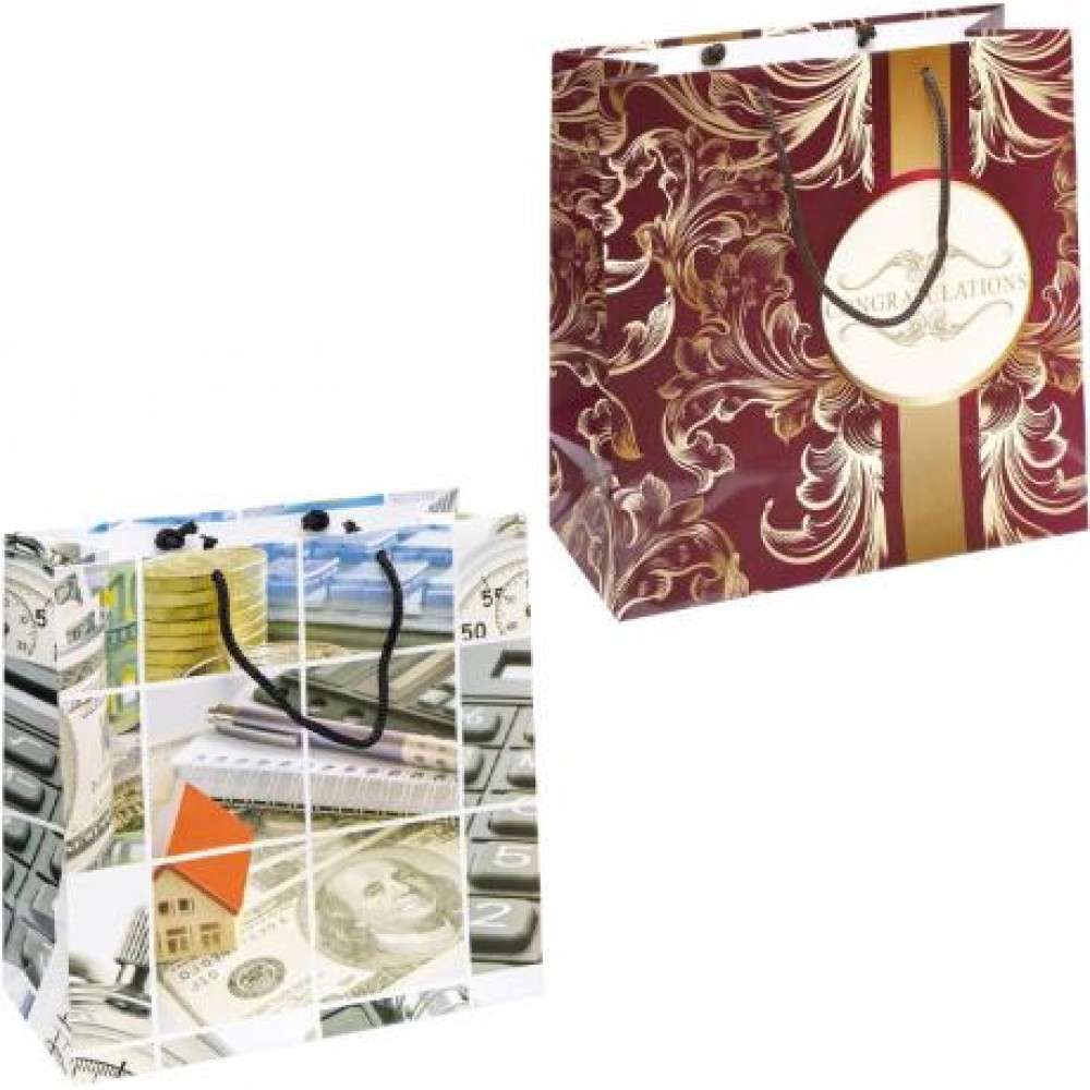 Пакет подарунковий кольоровий квадрат. Глянцевий. Ручки шнурок. Розмір 24х24х10 см. Мікс 12 шт. Кольори в асортименті.