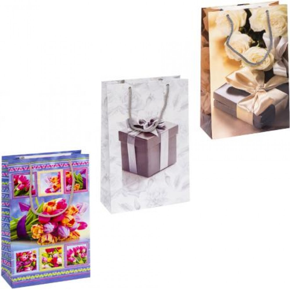 Пакет подарунковий, розмір 26х16,5х7 см. Ручки шнурок. Мікс 12 шт. Кольори в асортименті.