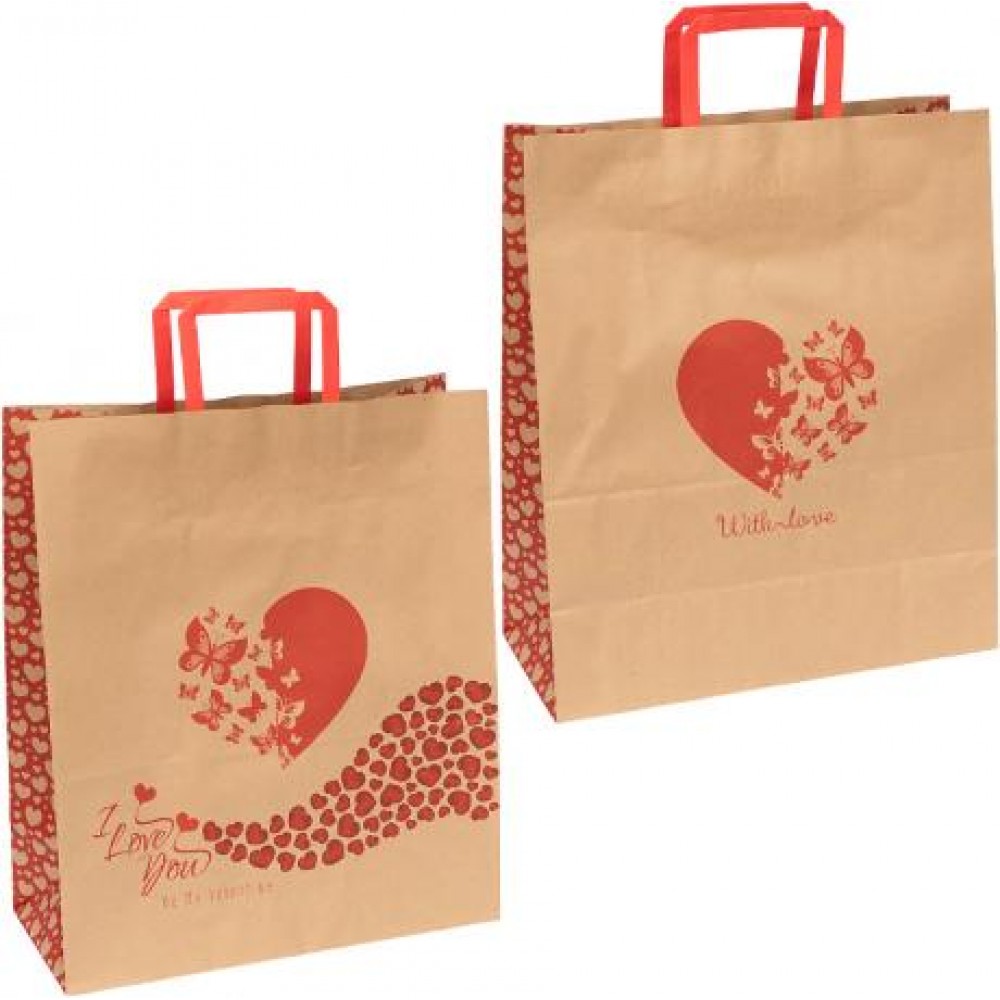 ПАКЕТ КРАФТ. ручки - прямокутні паперові кольорові, 32х15х38 см, папір 100 г/ м2.Крафт колір Бурий . Друк -3-6 фарб пантон (основний дизайн з обох боків) + 1 фарба-чорний пантон (вихідні данні+ШК) (В одній упаковці один дизайн )