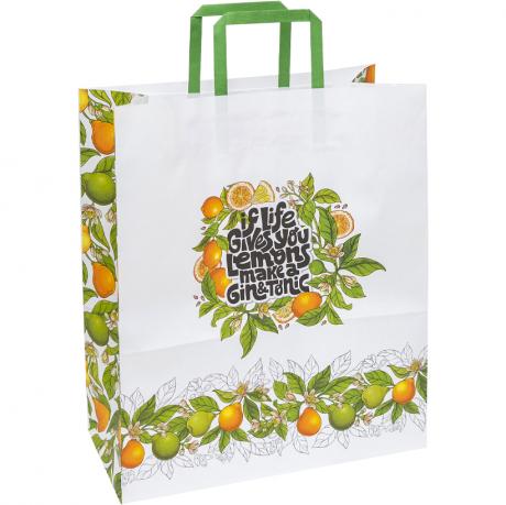 ПАКЕТ ПАПЕРОВИЙ. ручки - прямокутні паперові кольорові, 32х15х38 см, папір 100 г/ м2.Крафт колір Білий . Друк - 4 фарби пантон (основний дизайн з обох боків) + 1 фарба-чорний пантон (вихідні данні+ШК).В одній упаковці один дизайн 10шт