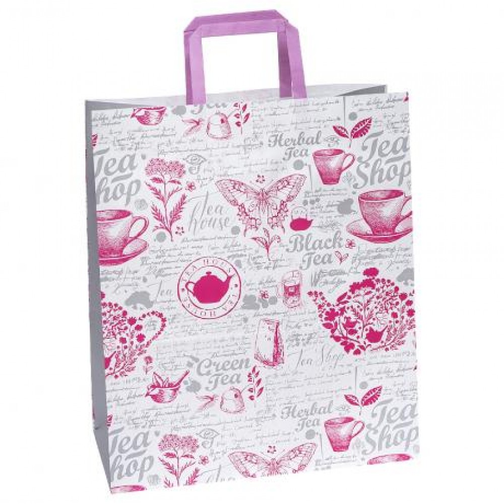 Паперовий пакет розміром 32х15х38 см виготовлений з паперу 100 г/м². Має прямокутні кольорові ручки. Колір крафт – білий. Друк виконано в 4 кольорах Pantone з основним дизайном з обох боків та 1 кольором чорного Pantone для вихідних даних і штрих-коду. Упаковка містить 10 штук одного дизайну.