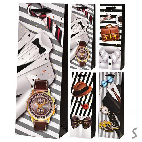 Пакет подарочный под бутылку "Fashion" 12 х 35 х 9см, 210г/м2, 4 дизайна (124926-35)