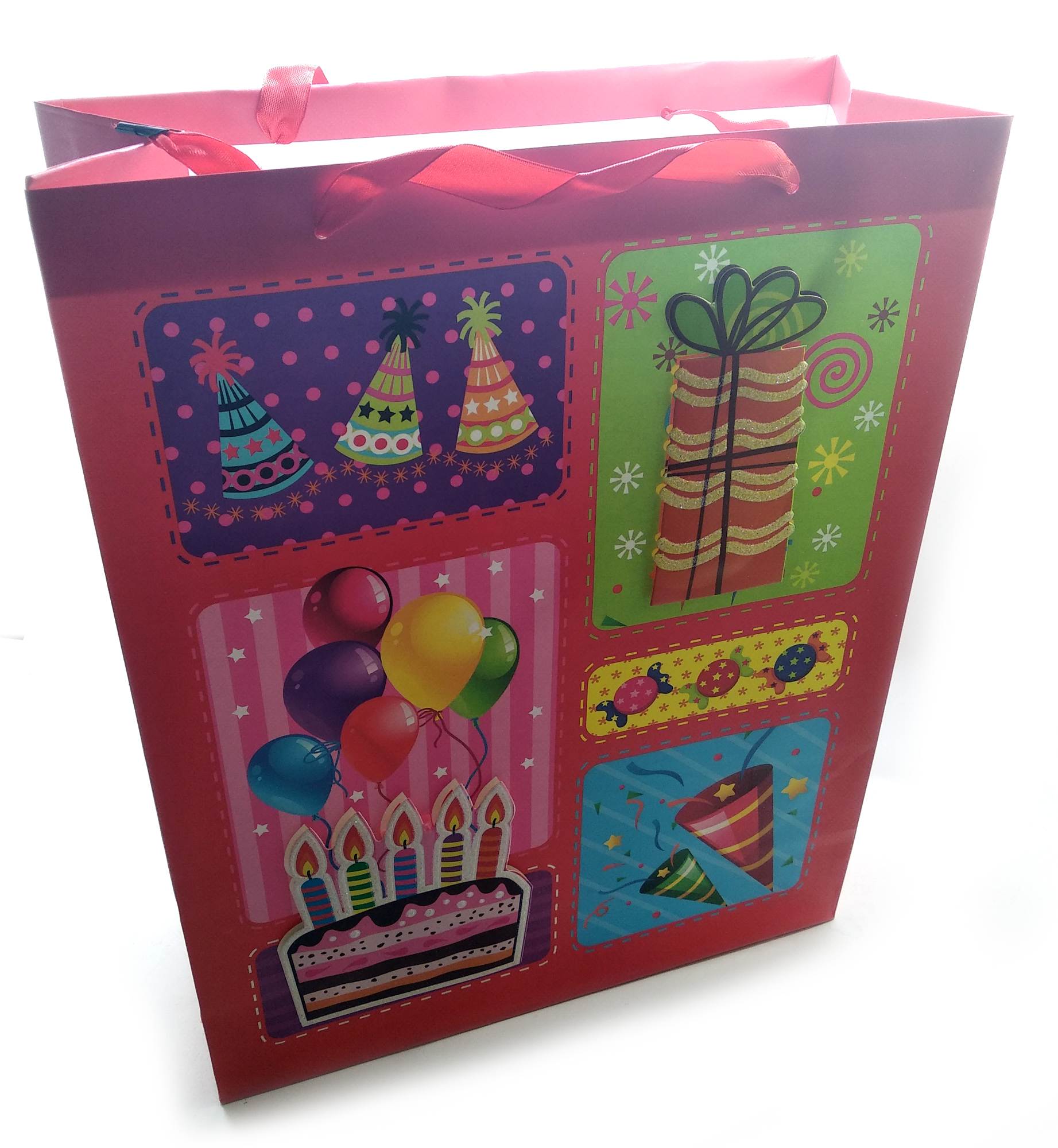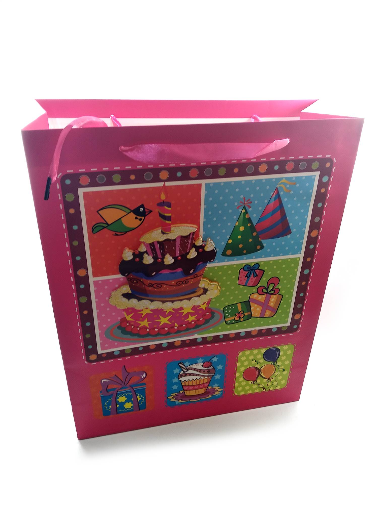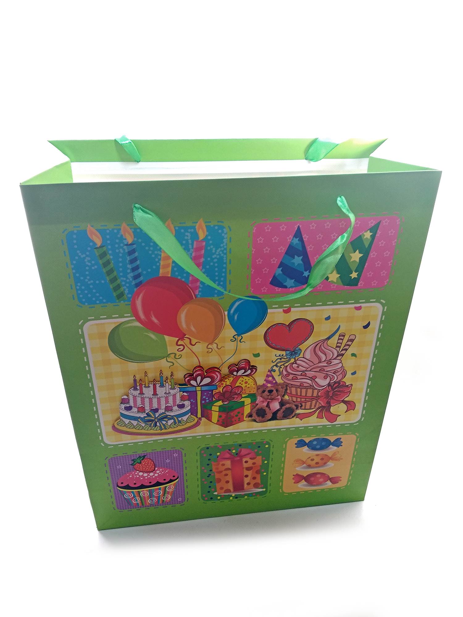 Пакет подарочный картонный с аппликацией Happy Birthday (30х38х12 см) код 32145