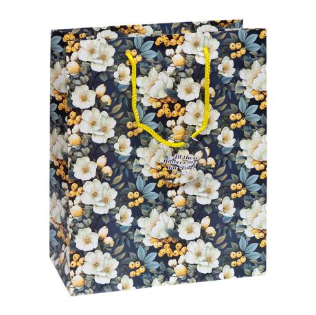 Пакет виготовлений з художнього паперу, розміри 26x32x12 см, щільність 140 г/м². Має повнокольоровий друк та матову ламінацію. Оснащений звичайною мотузковою ручкою 5 мм з ПП та кліпсою. В комплекті є подарунковий ярлик. Упаковка містить один дизайн.