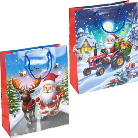 Пакет подарунковий з глянцевою поверхнею. Розміри 18*21,5*8 см. В комплекті 12 штук з чотирма різними малюнками. Ручки виконані у вигляді шнурка.