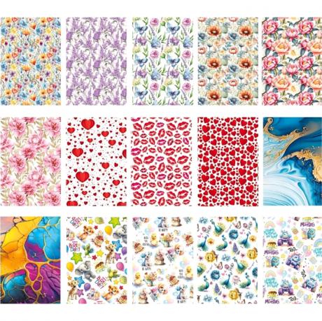 Папір для пакування подарунків розміром 90х64 см. Упаковка містить 40 листів, з яких 20 дизайнів по 2 аркуші кожного. Ціна вказана за один аркуш паперу.