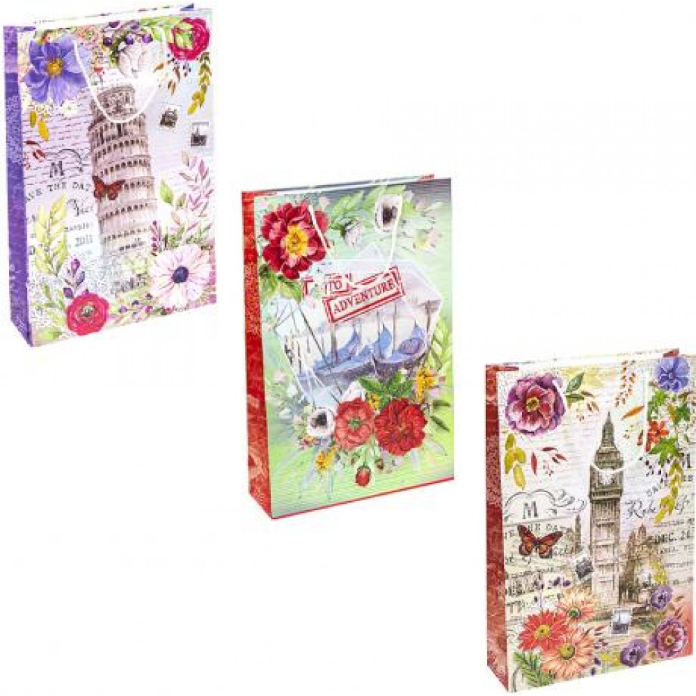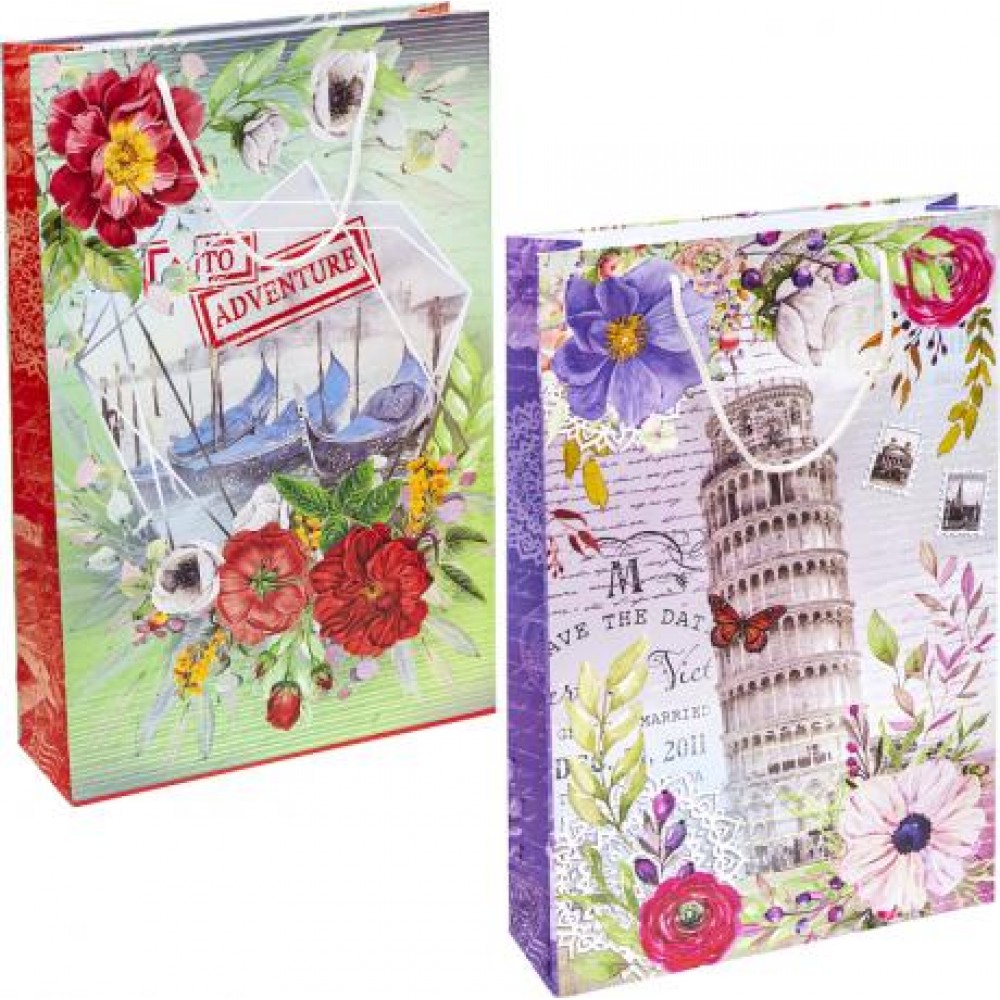 Подарунковий пакет розміром 26х16,5х7 см. Оснащений ручками-шнурками. У наборі 12 штук. Кольори в асортименті.