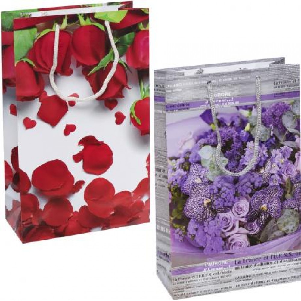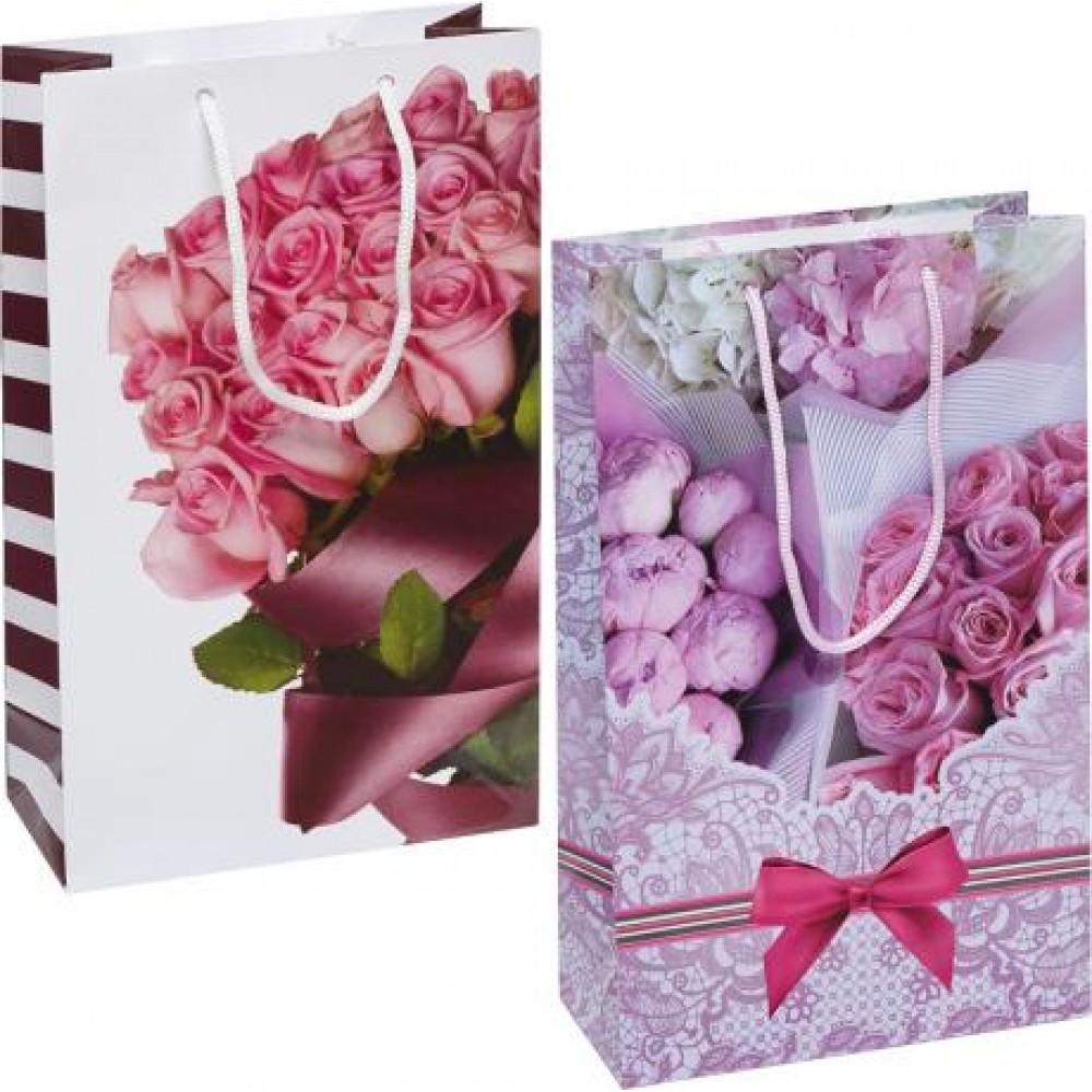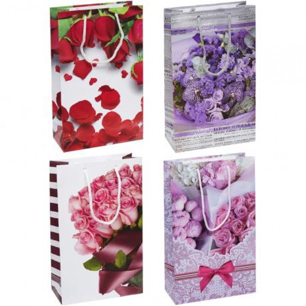Пакет подарунковий з глянцевою поверхнею. Розміри 27х16х7 см. Має ручки-шнурки. У наборі 12 шт. Кольори в асортименті.