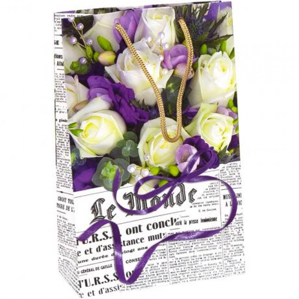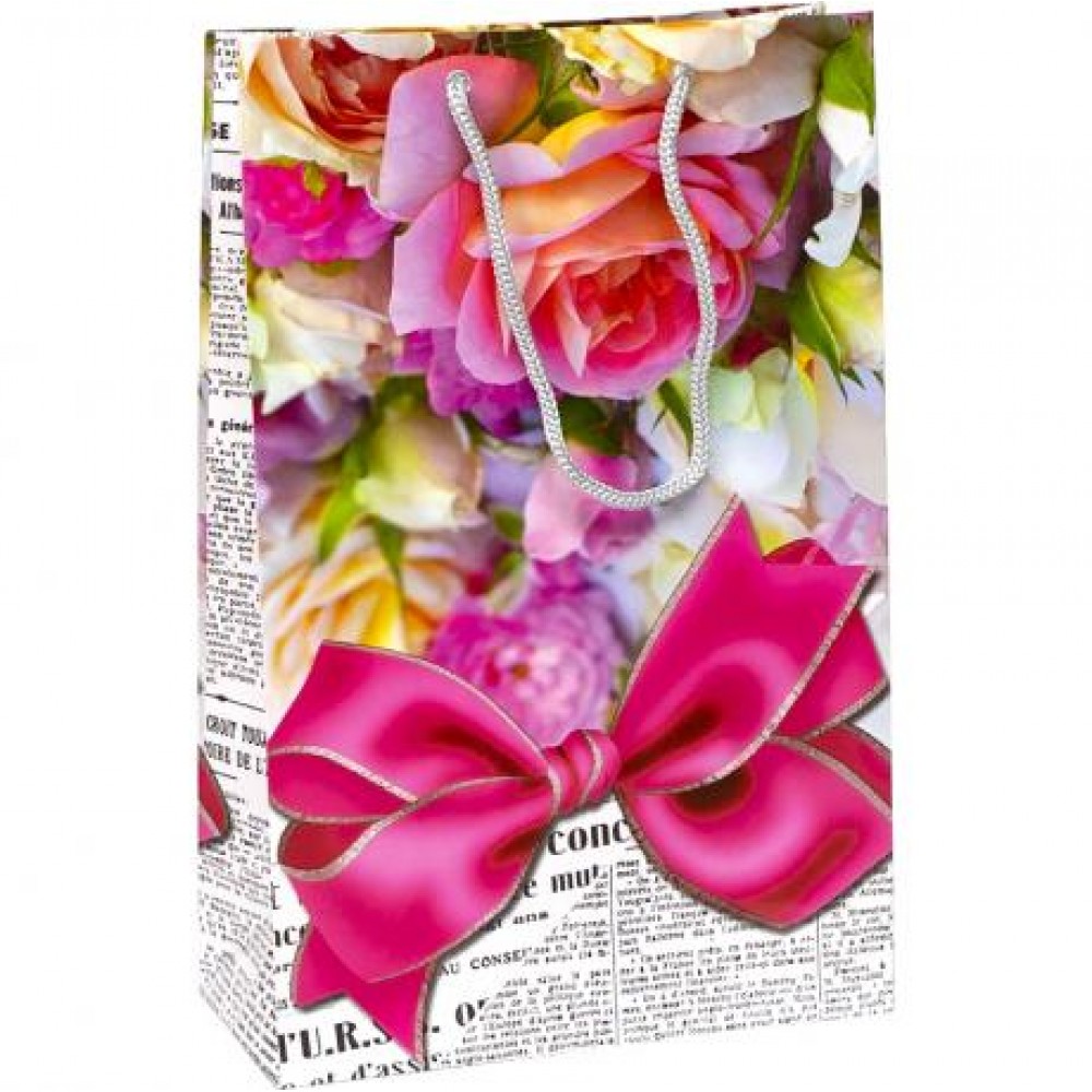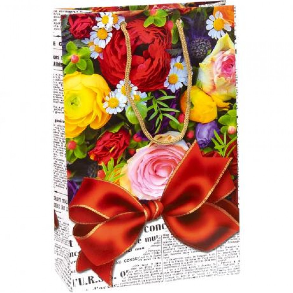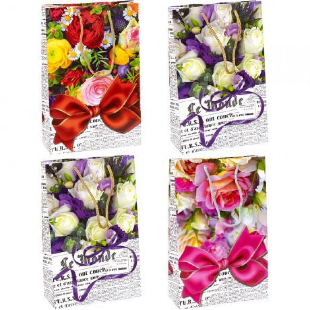 Пакет подарунковий "Квіти". Глянцевий. Ручки шнурок. Розмір 27х16х5 см. Мікс 12 шт. Кольори в асортименті.