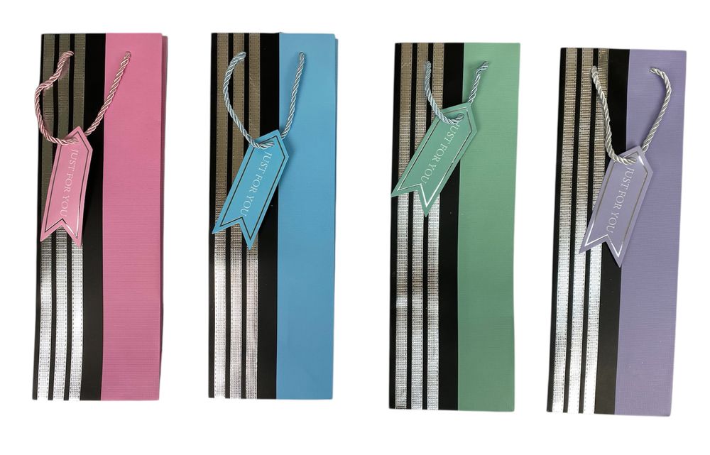 Пакет подарочный под бутылку, фольгированный, 4 дизайна, 210g, 12 x 35 x 10см (3161)