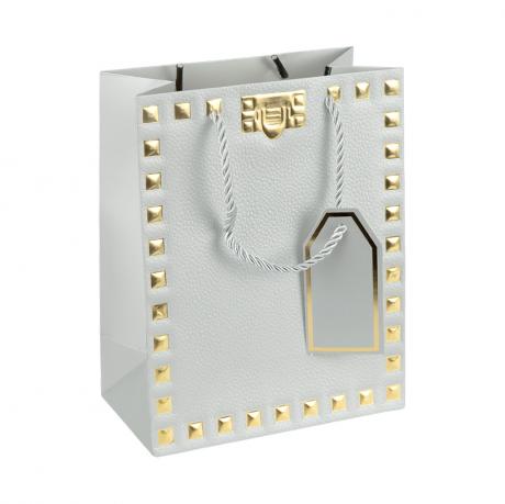 Подарунковий пакет вертикального формату виконаний з картону та прикрашений рельєфним тисненням. Фольгований золотий декор надає виробу акуратного та презентабельного вигляду. Пакет комплектується карткою для підпису, що робить його зручним для оформлення подарунків. Оснащений мотузковою ручкою.