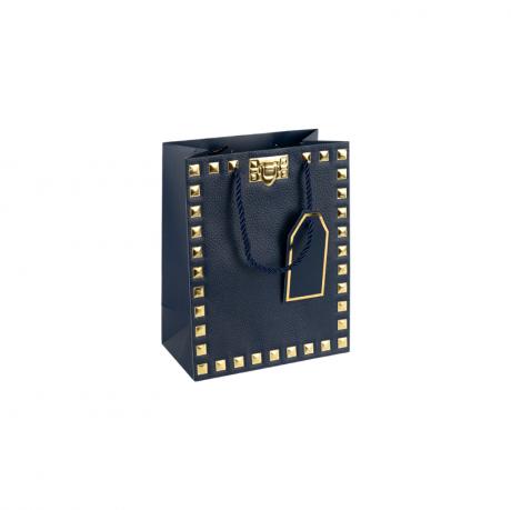 Подарунковий пакет вертикального формату виконаний з картону та прикрашений рельєфним тисненням. Фольгований золотий декор надає виробу акуратного та презентабельного вигляду. Пакет комплектується карткою для підпису, що робить його зручним для оформлення подарунків. Оснащений мотузковою ручкою.