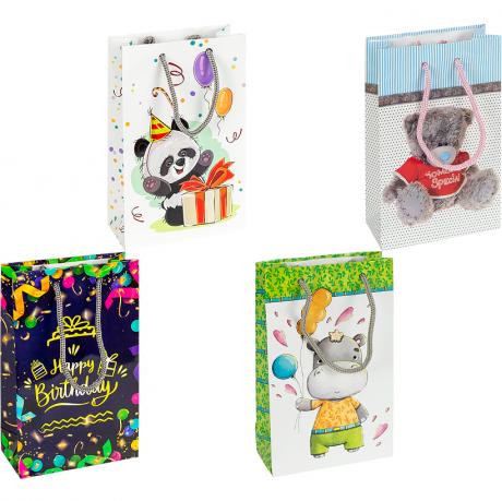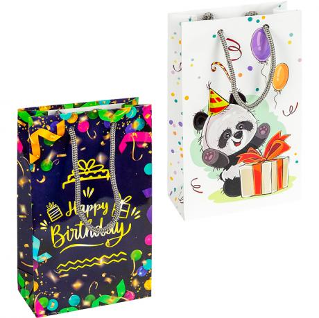 Пакет подарунковий малий . Глянцевий. Ручки шнурок. Розмір 11х18х5 см. Мікс 12 шт. Кольори в асортименті.