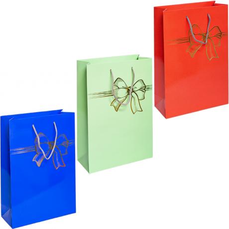Пакет кольоровий великий "Бант" картон вертикальний 24х35х10см 5065