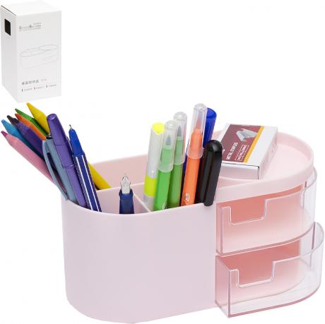 Настільний органайзер 9×18×9 см (без наповнення) — компактне та стильне рішення для зберігання канцелярії, аксесуарів і дрібниць на робочому столі. Органайзер має відкриті відділення для ручок, олівців і маркерів, а також два висувні ящички для дрібних речей. Виготовлений із міцного пластику, легко миється та займає мінімум місця. Ідеально підходить для дому, офісу, школи або творчих студій. Постачається без наповнення.