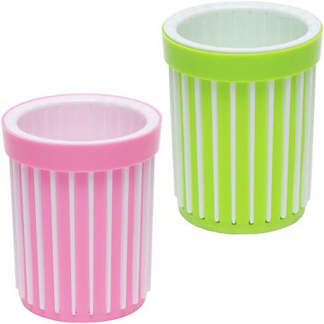 Пластикова склянка для ручок і олівців. Внутрішня частина склянки виймається таким чином з однієї склянки можливо отримати склянку та підставку для ручок. Розмір 10,5* 8,5см