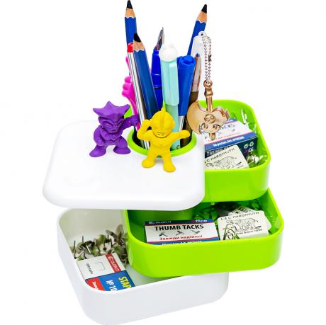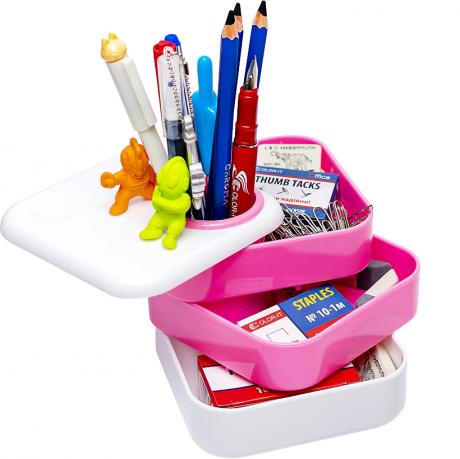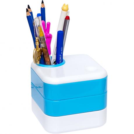 Стакан для ручок пластиковий для письмового приладдя, кольори в асортименті. 10*10*9см Діаметр отвору 4см