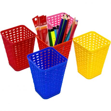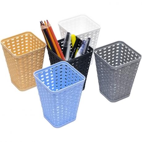 Стакан для ручок пластиковий "Ротанг", кольори в асортименті. 9 * 12 * 6 см