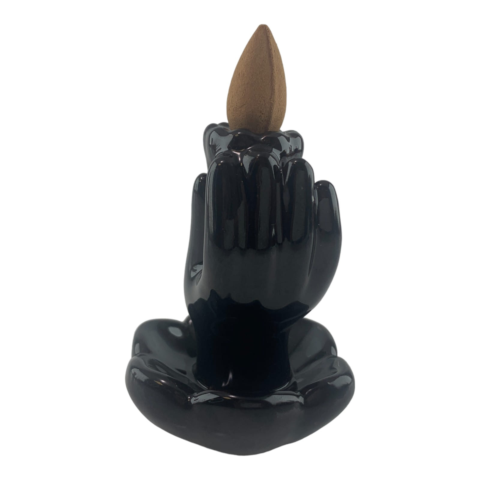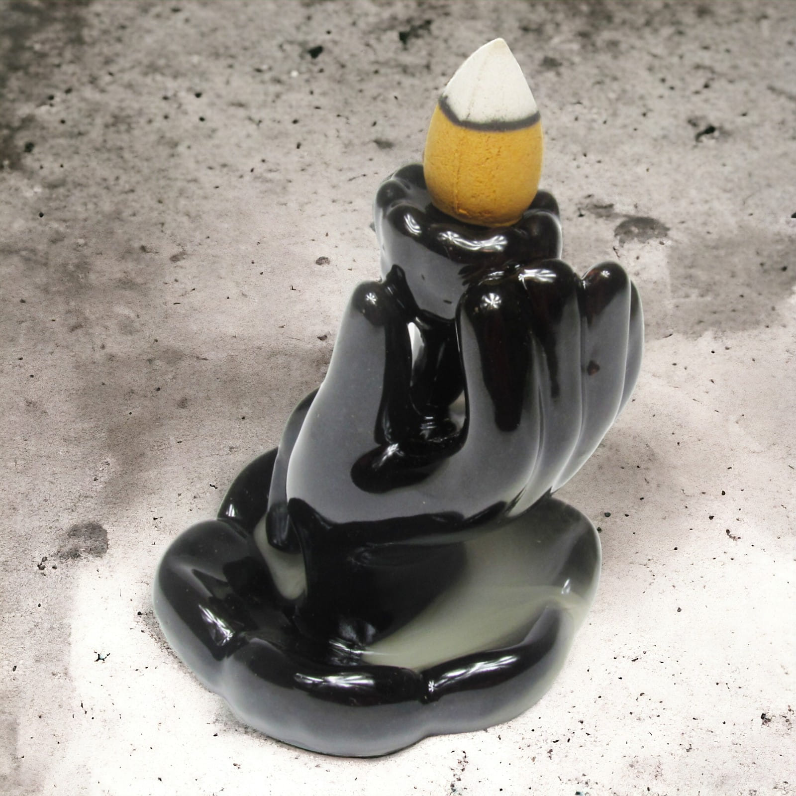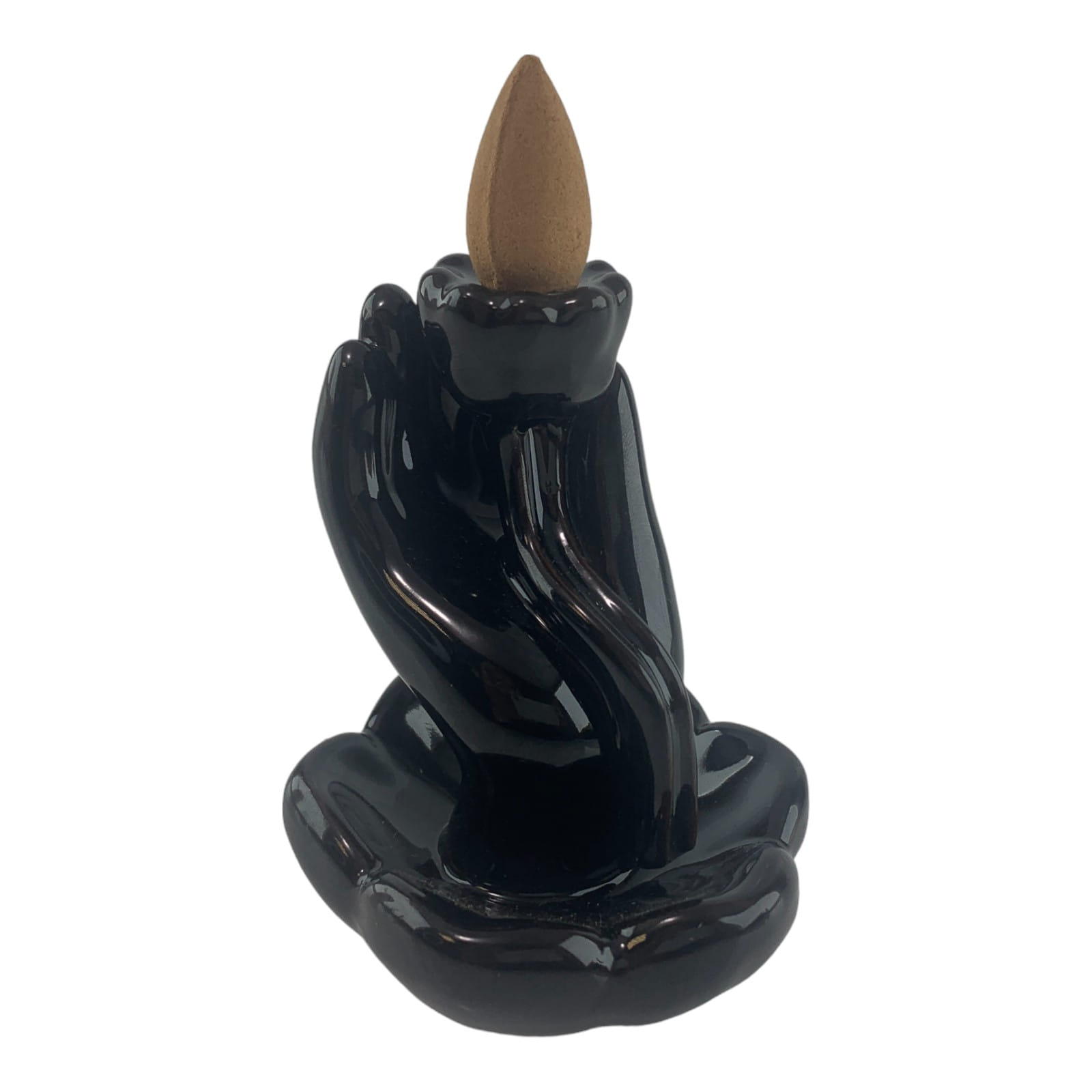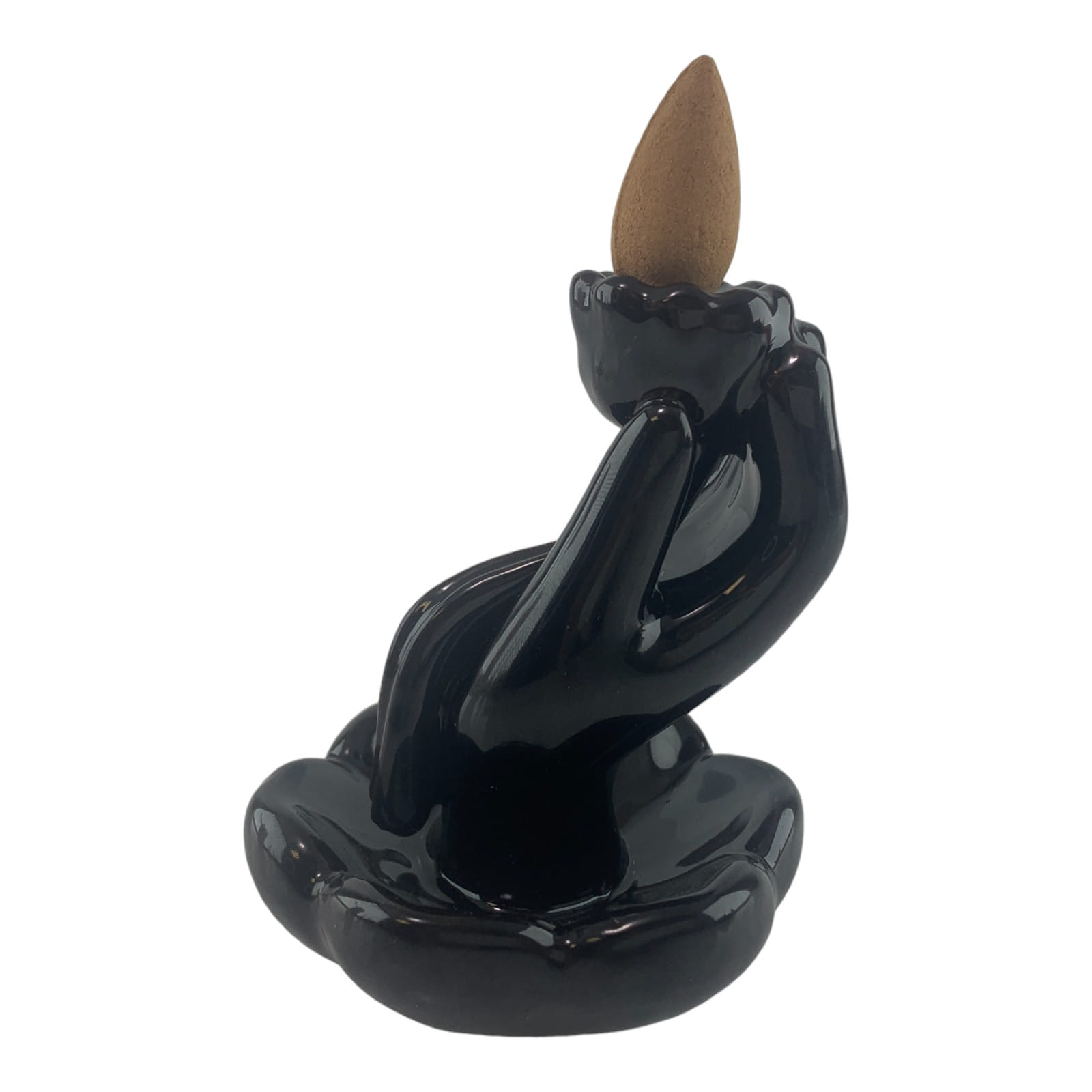 Подставка олицетворяет великолепный лотос в ладони — символ чистоты и духовного просветления. Ее черно-коричневая отделка придает ей изысканный и стильный вид, идеально вписываясь в интерьер любого помещения.