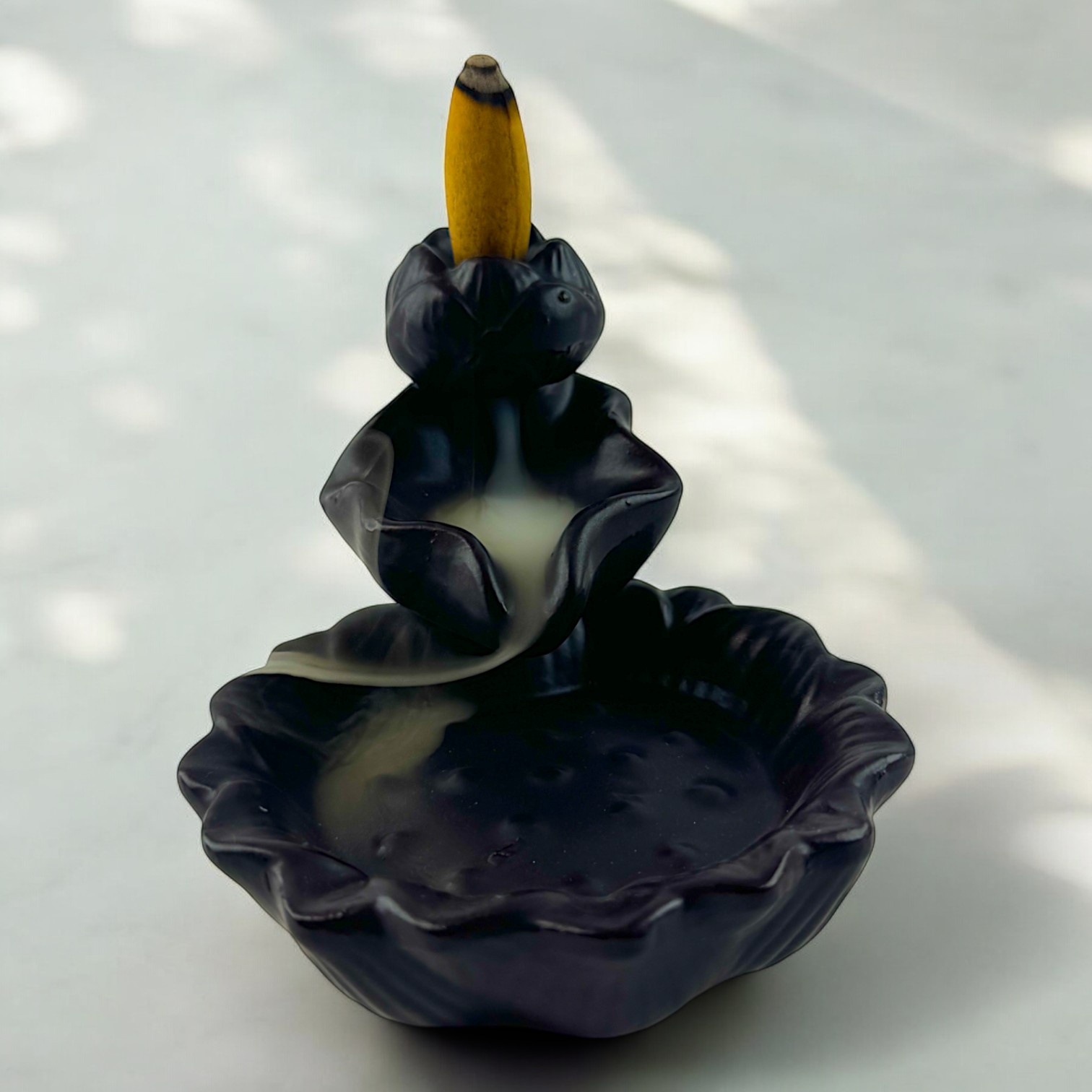 Эта подставка для благовоний с эффектом обратного дыма выполнена в форме лотоса с каскадным дизайном, создающим визуальный эффект водопада. Когда благовоние зажигается, дым медленно стекает по уровням, создавая завораживающую атмосферу спокойствия и медитации. Подставка изготовлена из прочного материала и идеально подойдет для создания уюта в доме или офисе.