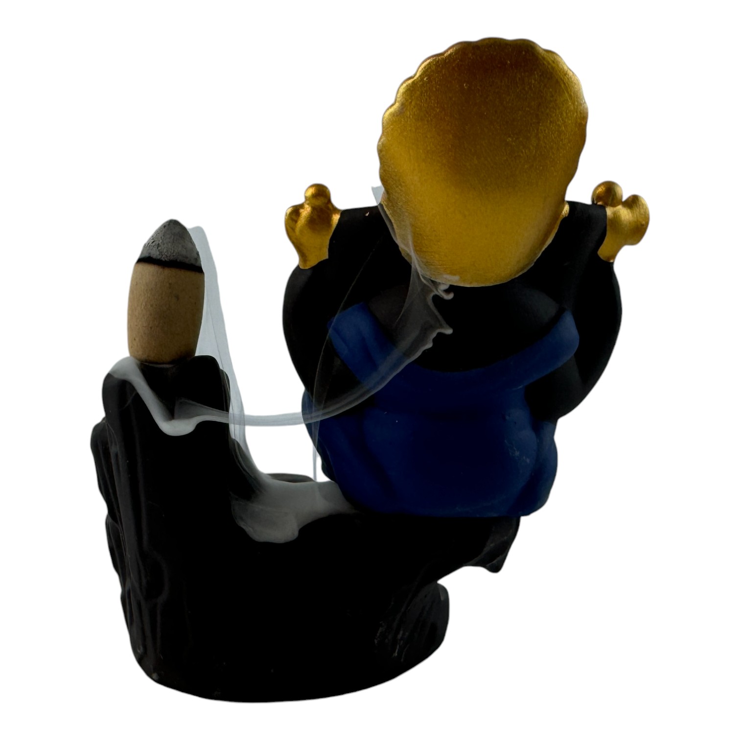 Эта элегантная подставка для благовоний с изображением божества Ганеши выполнена в технике back flow, что позволяет дыму плавно стекать вниз, создавая завораживающий визуальный эффект. Ганеша, украшенный золотыми деталями, символизирует мудрость, удачу и защиту от препятствий. Такая подставка станет прекрасным украшением интерьера, привносящим спокойствие и духовную гармонию. Она идеальна для медитаций, релаксации и создания благоприятной атмосферы дома или в рабочем пространстве.