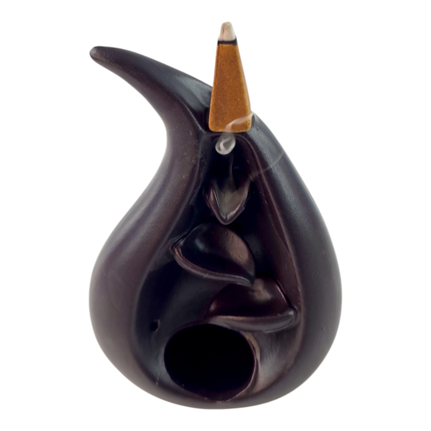 Керамическая подставка для благовоний в форме капли, которая создает завораживающий эффект обратного потока дыма. Благодаря своей особой конструкции, дым плавно спускается по каскаду, создавая атмосферу спокойствия и релаксации. Идеально подходит для медитаций, релаксации или создания уютной атмосферы дома. Подходит для использования как с конусовидными, так и с обычными благовониями.