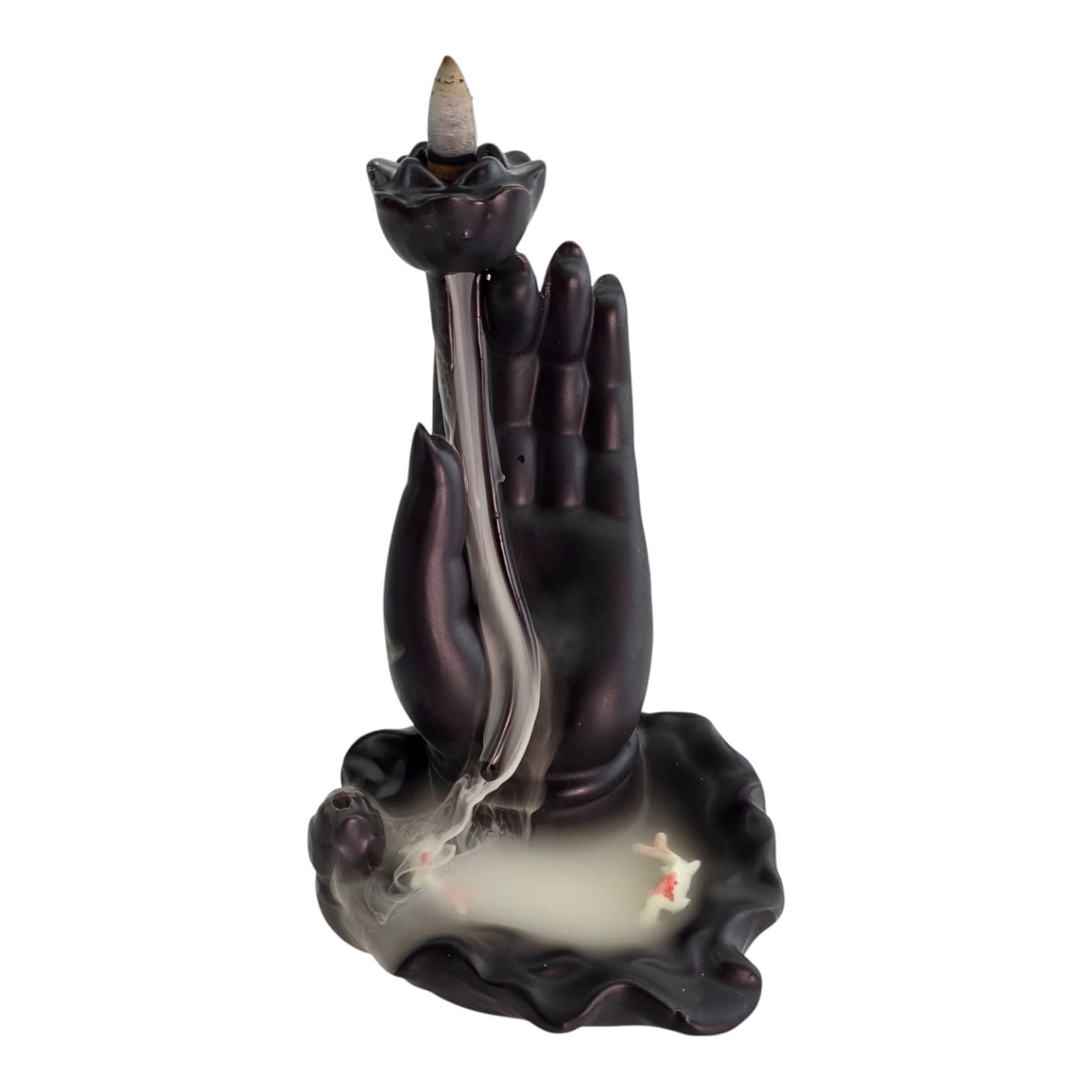 подставка для благовоний, конусы backflow, держатель палочек, аромакурильница, водопад дыма, керамическая подставка, рука будды, лотос, ароматерапия, медитация, релакс, декор дома, подарок для дома