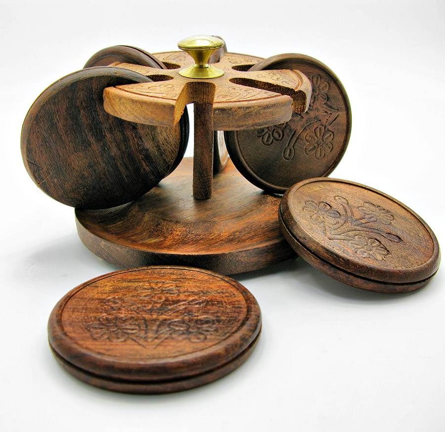 Подстаканник розовое дерево круглый Лепестки (18х18х10 см) (COSTER MELAN)