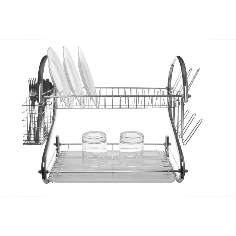 Полезное функциональное приобретение для Вашей кухни - сушилка для посуды UNIQUE UN-2002. Если Вы относитесь к тем, у кого в кухонной мебели не предусмотрена секция со встроенной сушилкой для посуды, то эта настольная сушилка прекрасно решит эту проблему. Также она будет удобна для использования в небольшой офисной кухне или летнем дачном доме. Сушилка изготовлена из нержавеющей стали, имеет пластиковый поднос для стока воды, боковые отделения для сушки столовых приборов и держатели для стаканов и кружек. Отделение для тарелок представляет собой вертикальные отсеки, в которых с тарелок стекает вода. Отделение для салатников, чашек и другой посуды находится на нижнем ярусе. Практична, удобна и компактна