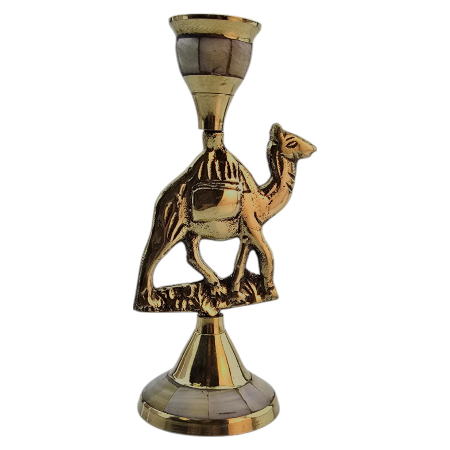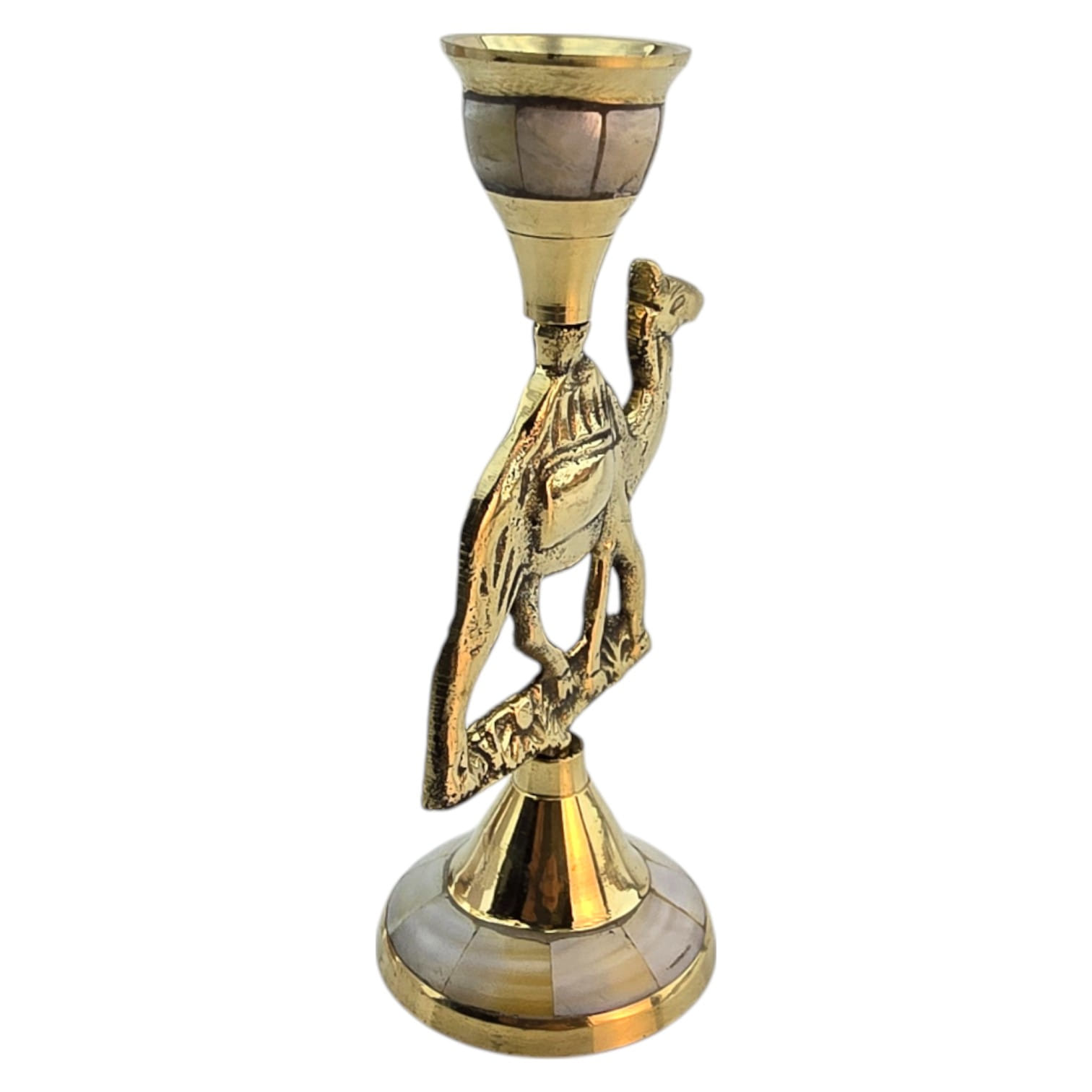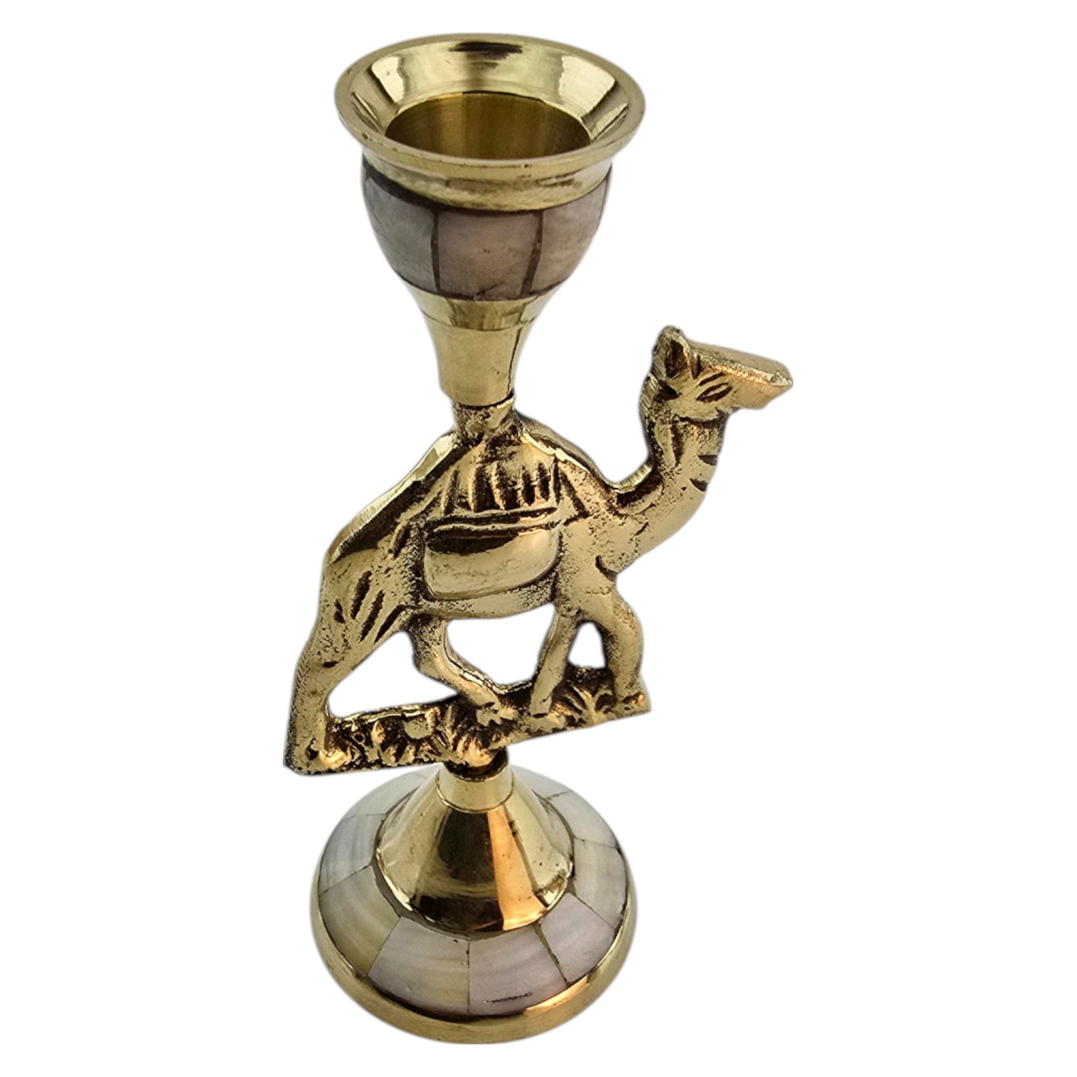 Декоративный подсвечник в виде верблюда изготовлен вручную из латуни с инкрустацией из перламутра. Верблюд символизирует выносливость, путь и восточную мудрость, благодаря чему изделие может стать не только практичным аксессуаром, но и символичным подарком.