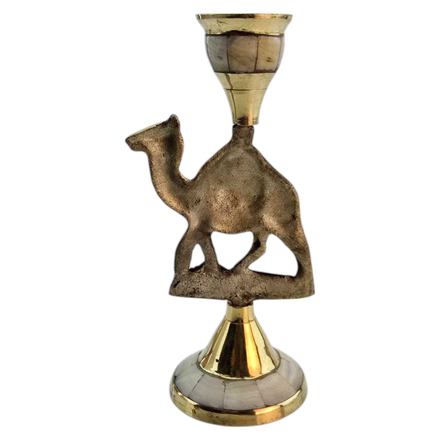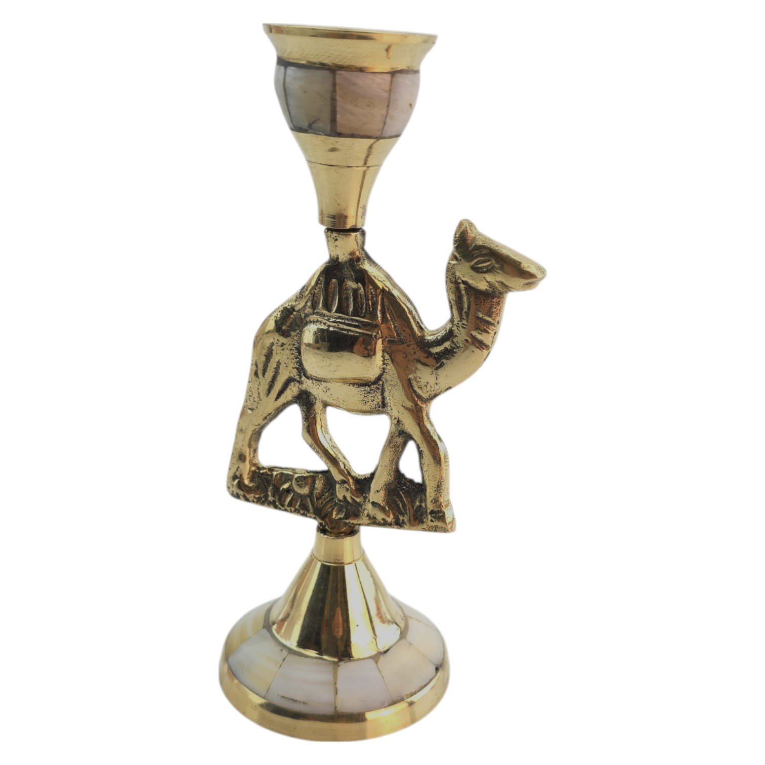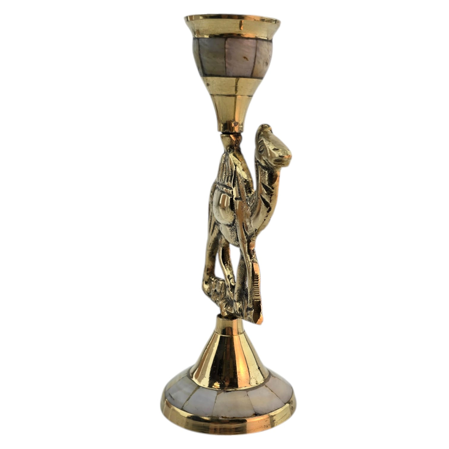 Декоративный подсвечник в виде верблюда изготовлен вручную из латуни с инкрустацией из перламутра. Верблюд символизирует выносливость, путь и восточную мудрость, благодаря чему изделие может стать не только практичным аксессуаром, но и символичным подарком.