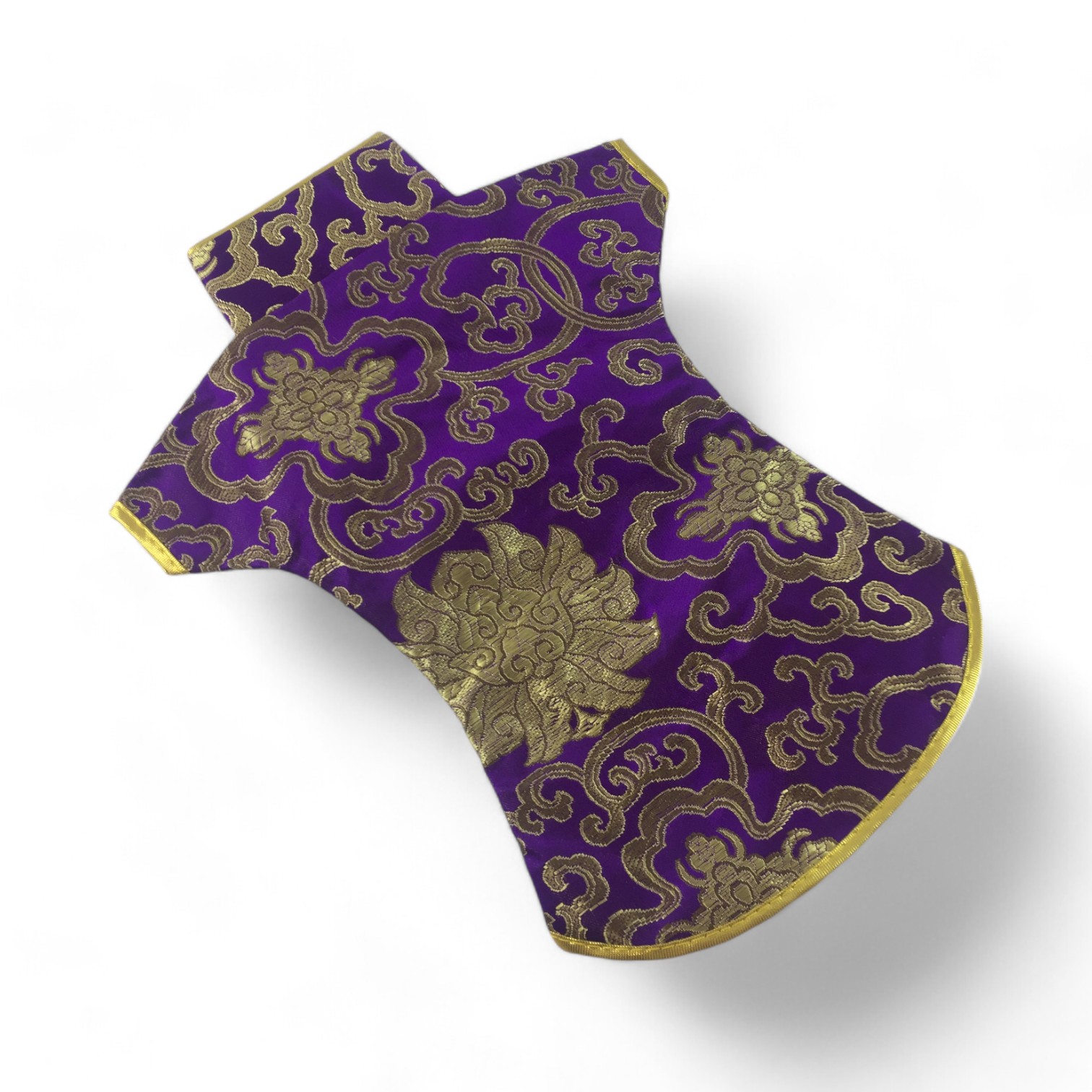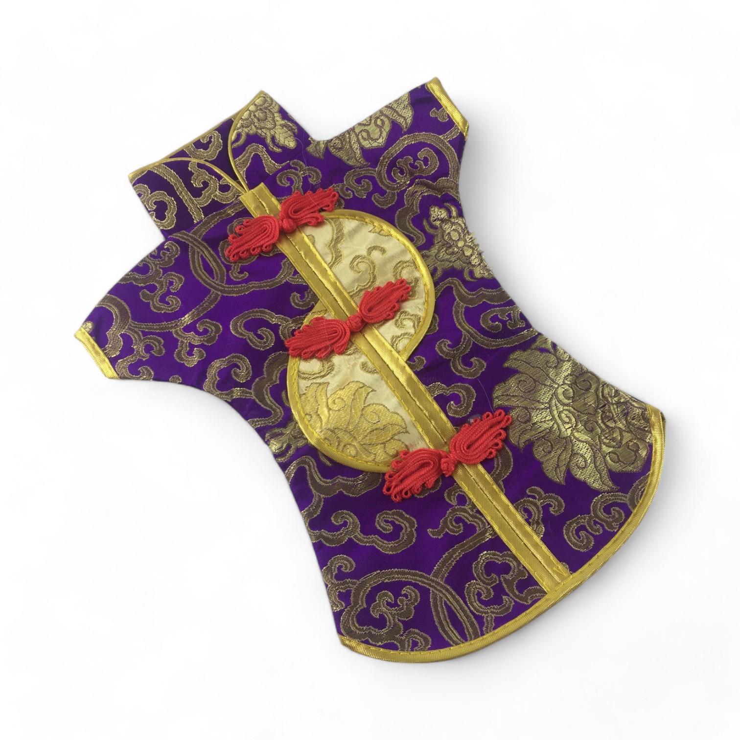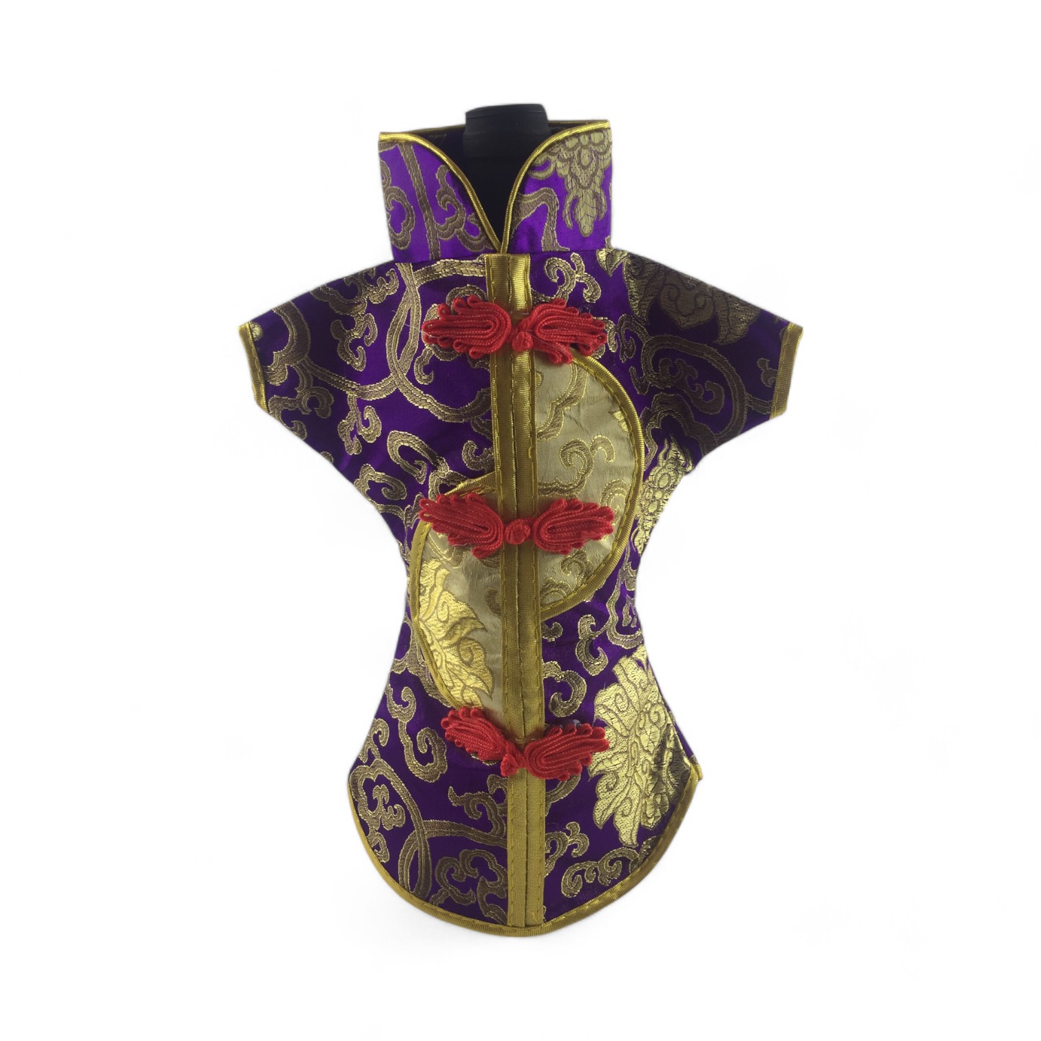 Этот элегантный чехол на бутылку выполнен в традиционном восточном стиле и напоминает миниатюрное кимоно. Он изготовлен из прочной ткани с ярким орнаментом, включающим символы и изображения, типичные для восточной культуры.